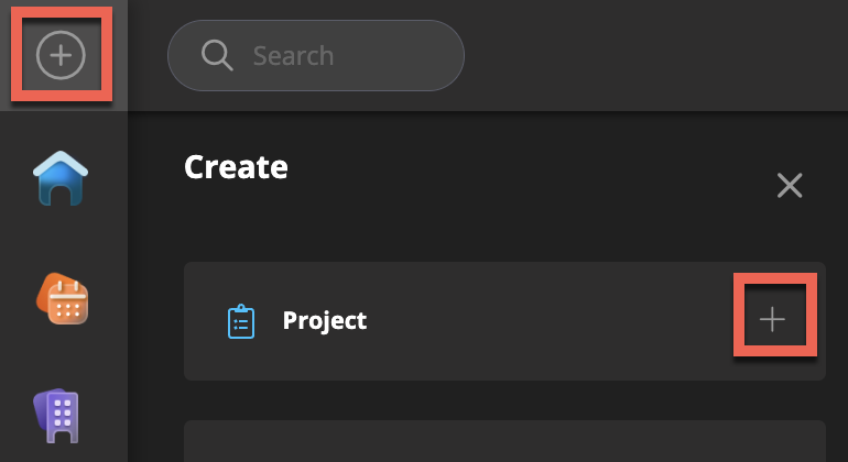 Click the Plus button and select Create Project. You can find the button to create the project in several places in the system, including the customer card.
