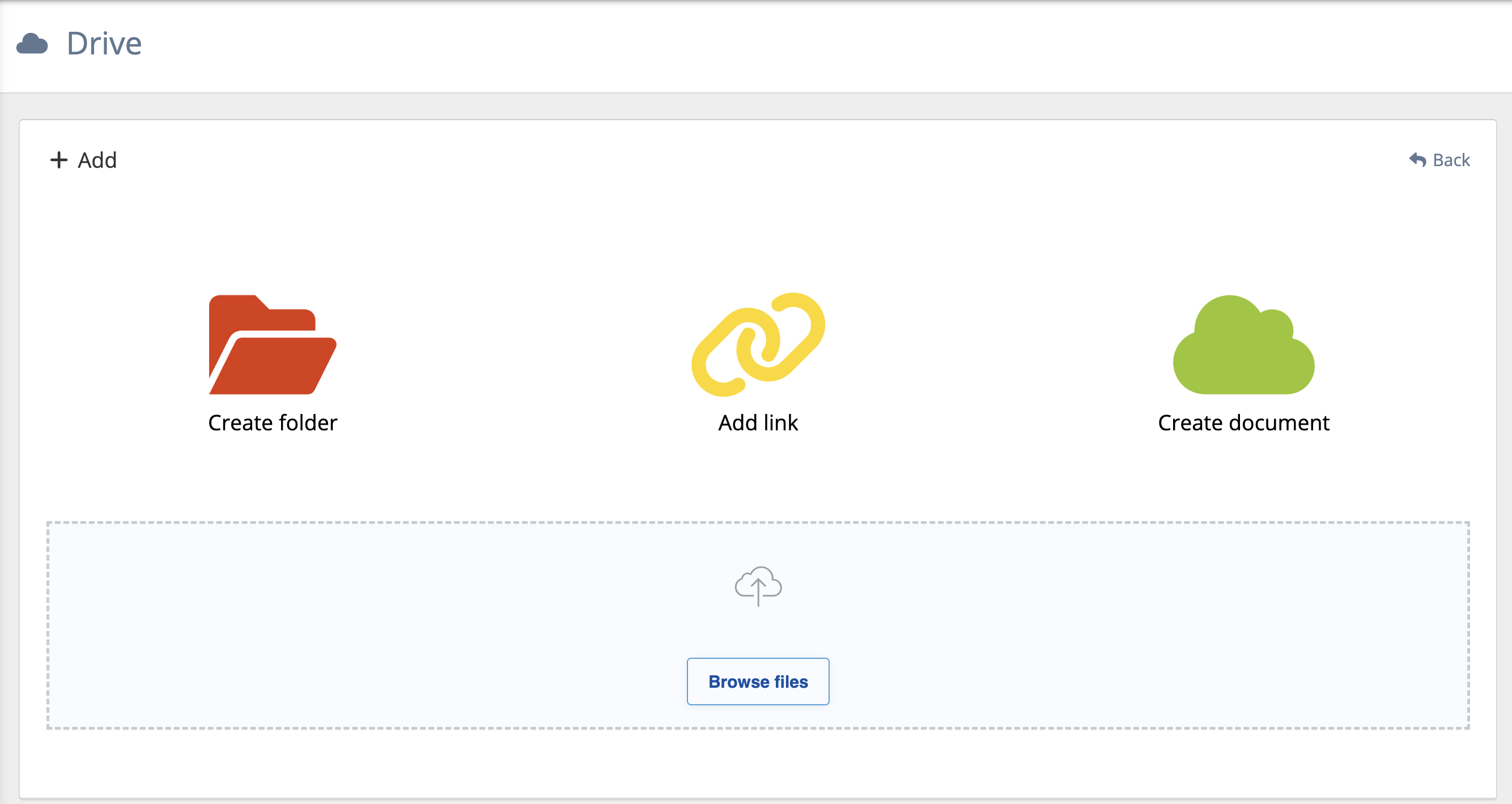 Here, you get the option to add a Folder, a Link, a Document or upload a File. By default, anything added will only be visible to you, and you will have to share it in order to give access to colleagues.