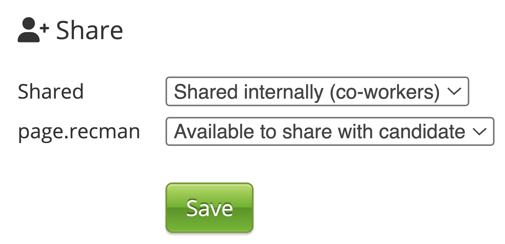 In Files, you have several sharing options. You can share your files with your co-workers or with candidates/employees.
