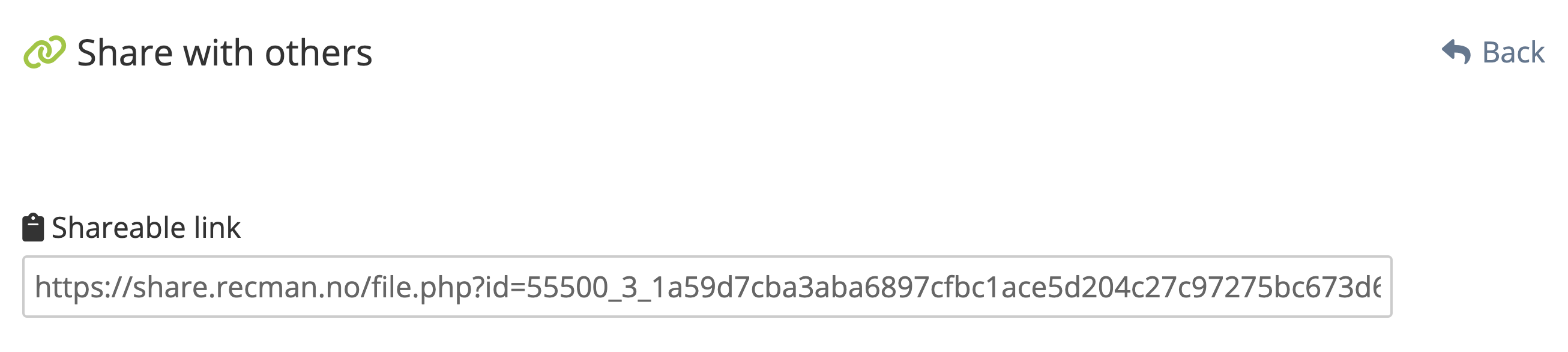 The link generated here in the bottom right corner is the shareable link to be copied into RecMan.