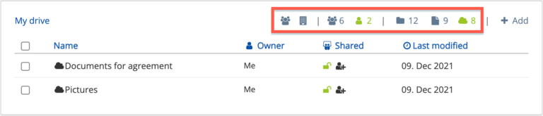 - Shared with me – See only files shared with you