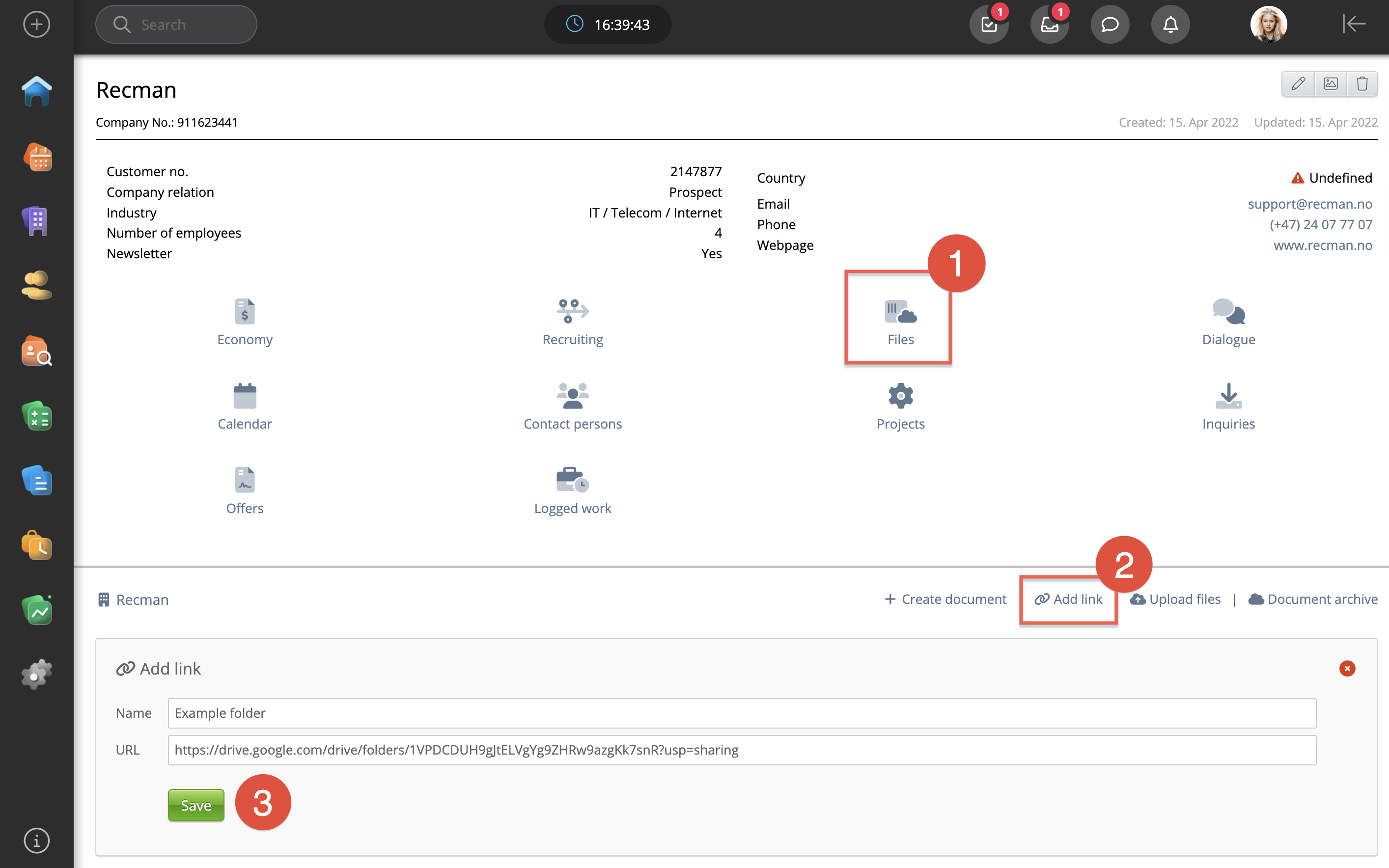 This URL can be to virtually any online website; however, you can also link to shared files or folders stored elsewhere online. For instance, a Google Docs document you are working with or a Sharepoint folder. Should you paste a link to a Google Docs document, you and your colleague can work on the same document simultaneously. Documents uploaded into the Files will have to be downloaded, changed and re-uploaded; however, you can avoid this by using links.