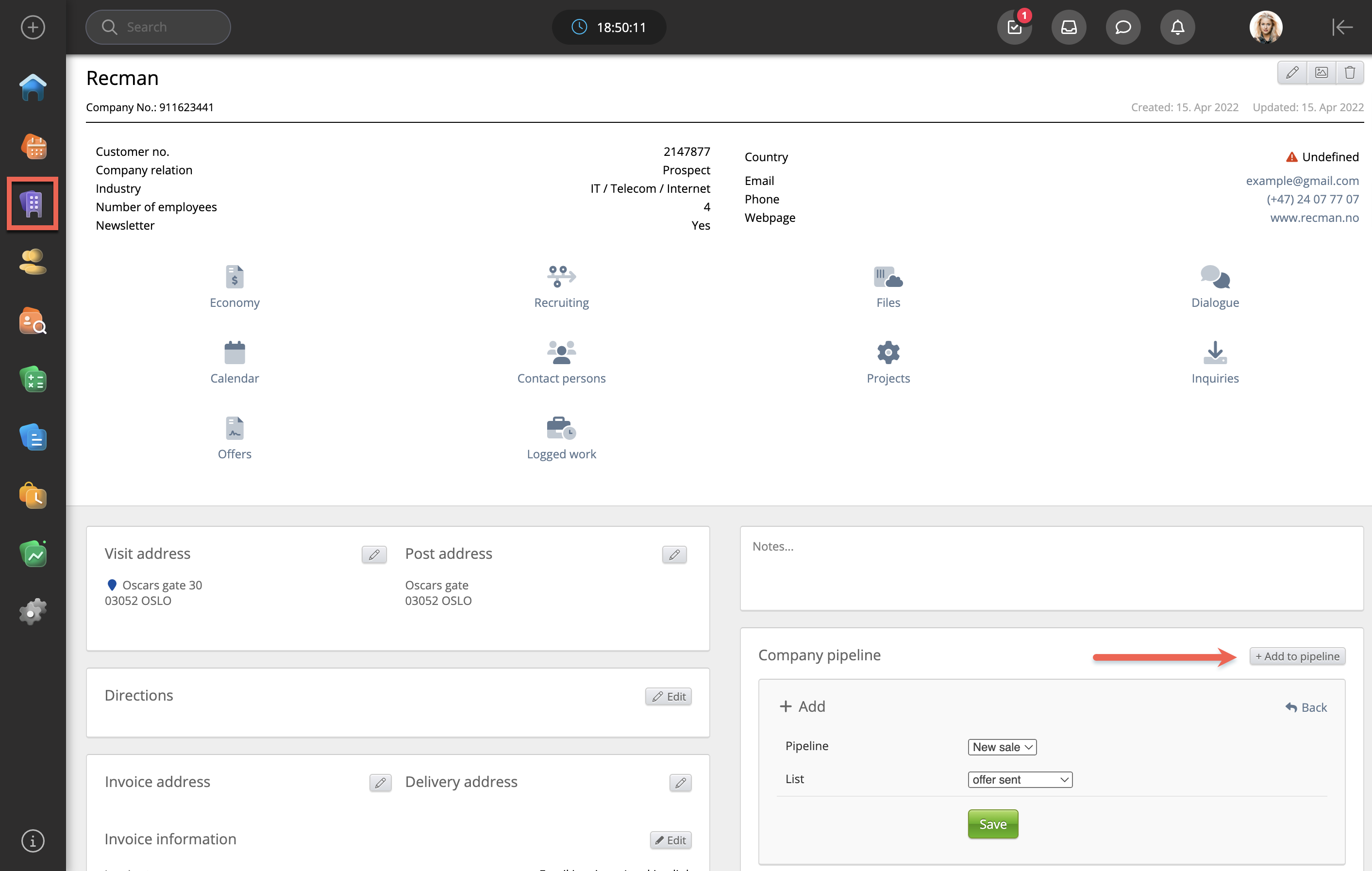 In this article, you can read about the Company pipeline, which simply lets you create your own pipeline for companies, sales and follow-ups.