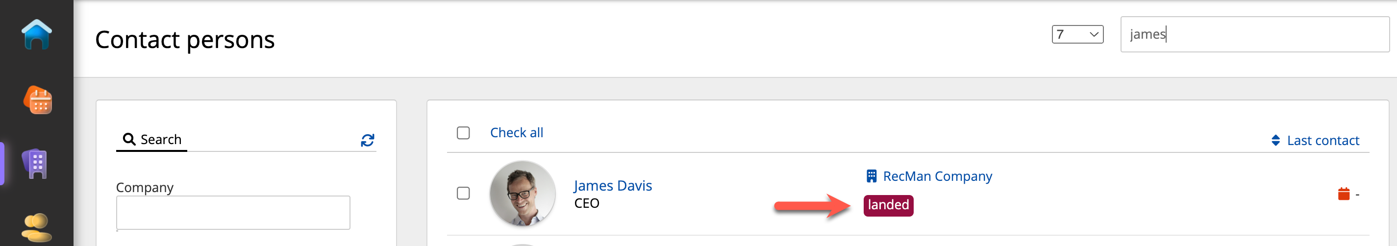 By doing so, you will also see a tag on the Contact person view. This makes it easy to see if a contact person is connected to a certain Company Pipeline.