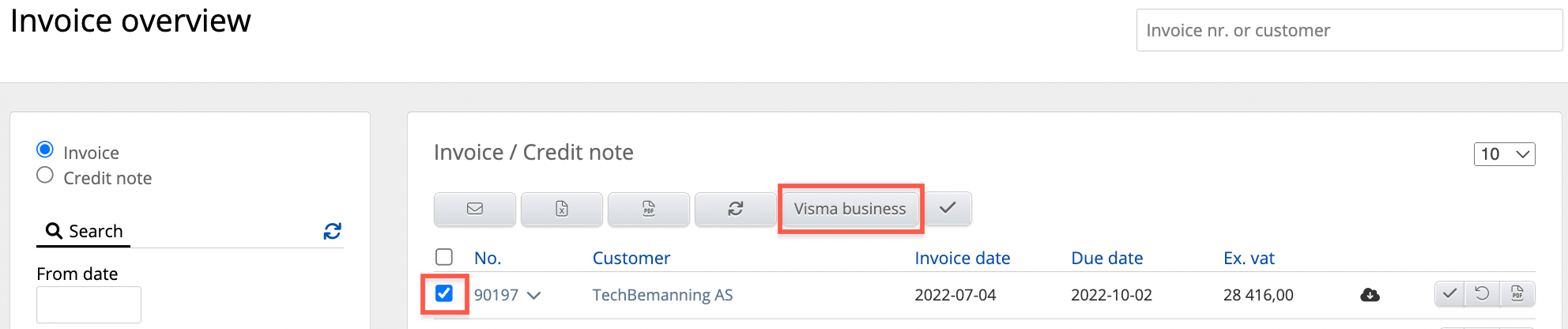 Afterward, you will have the opportunity to export invoices to the Visma system.