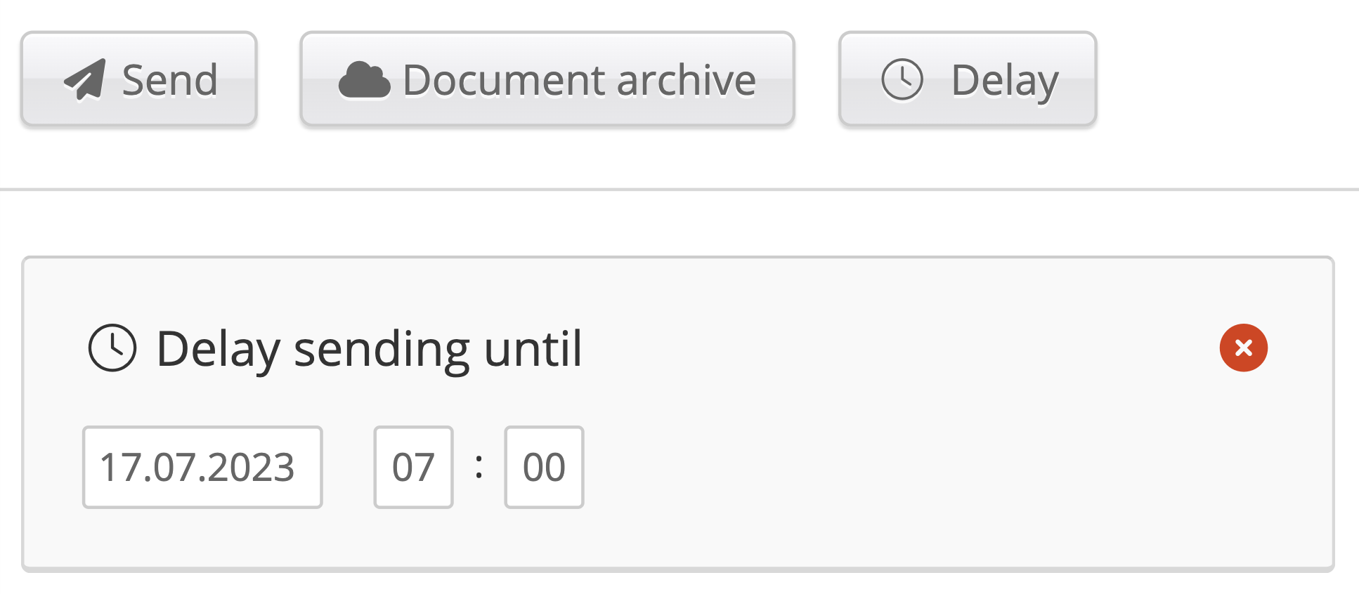 You can see a Delay button to the right of the menu. This will open a box where you can set a date and time for when you want the email to be sent.