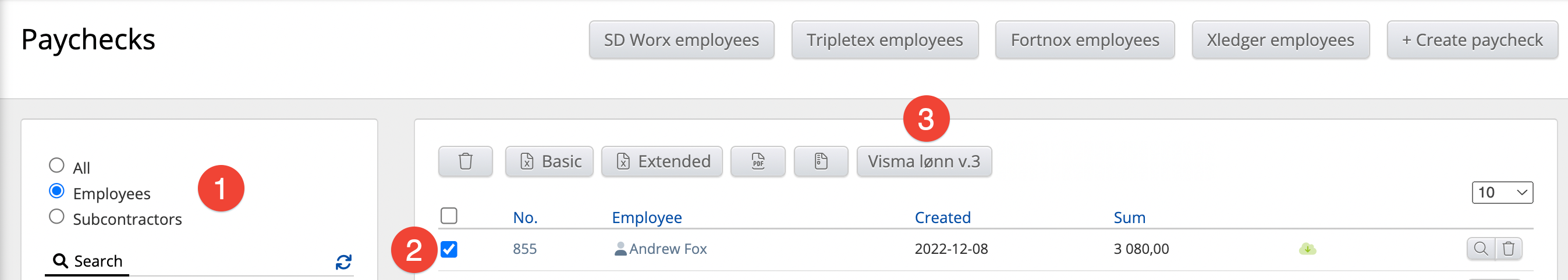 - Make the desired filters on the left in the salary basis overview, e.g., exported «no,» choose a specific department etc.