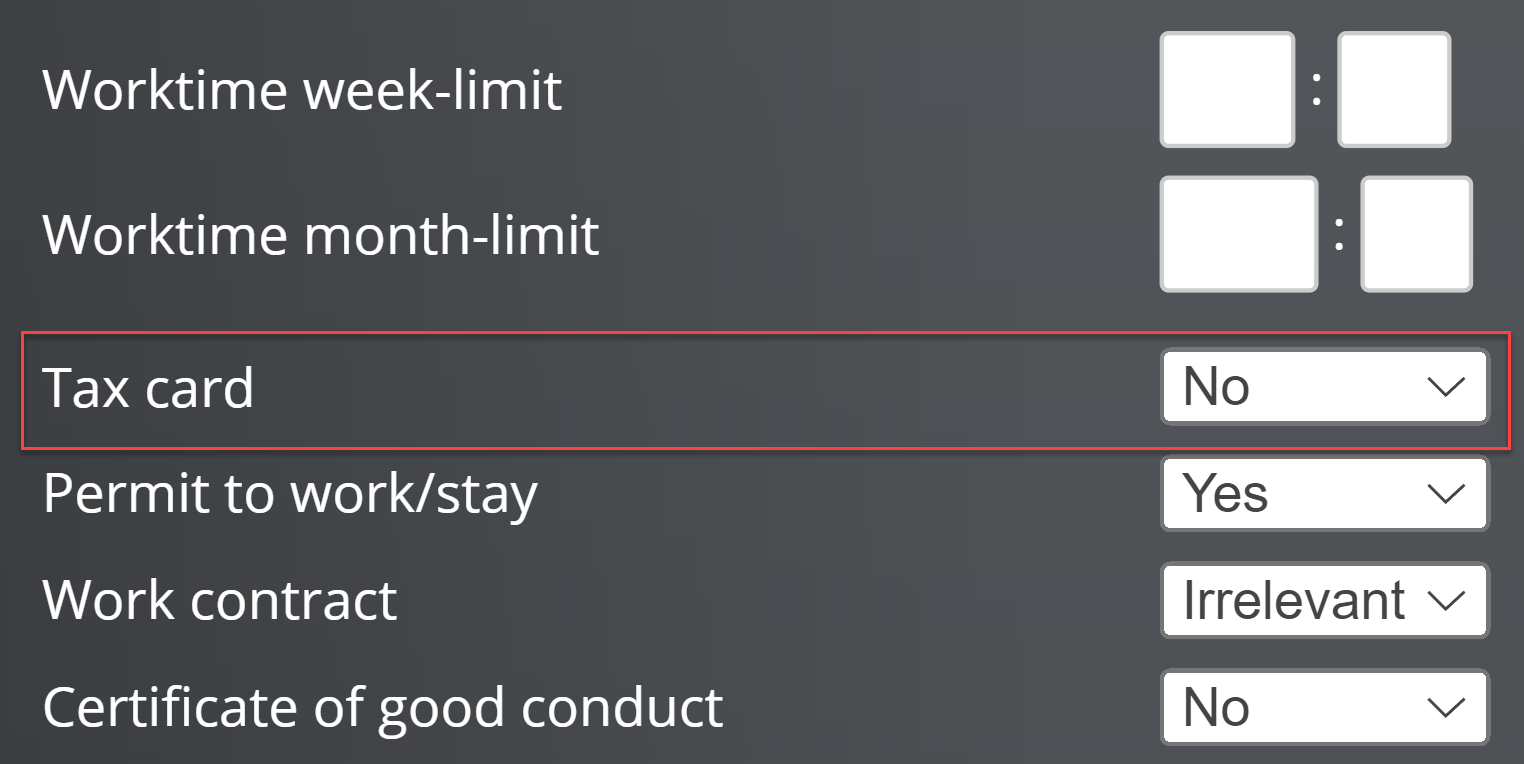 Often, you only want to include newly created employees in RecMan who do not exist in Visma Lønn. To differentiate between new employees and existing employees, one possibility may be to use the Tax Card yes/no filter. If you put a tax card to "no" on the candidate card under employee information, these new employees will appear when you filter it when the report is taken out. If it is done this way, it is also important to set the tax card field to "yes" when the tax card has been obtained from the candidate in Visma Lønn so that this information is also updated in RecMan.