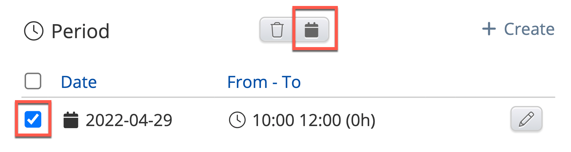 Below the Resources box, you will find the Period box. From here, you can create, edit, delete and replicate a period. Once you have created the desired periods, select them and press the small Calendar icon next to the trash can.