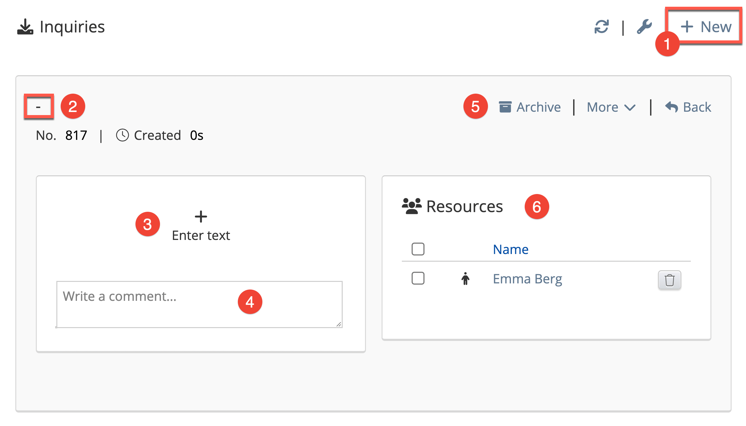 4. Here, you can add comments to keep track of what has been done regarding the inquiry.