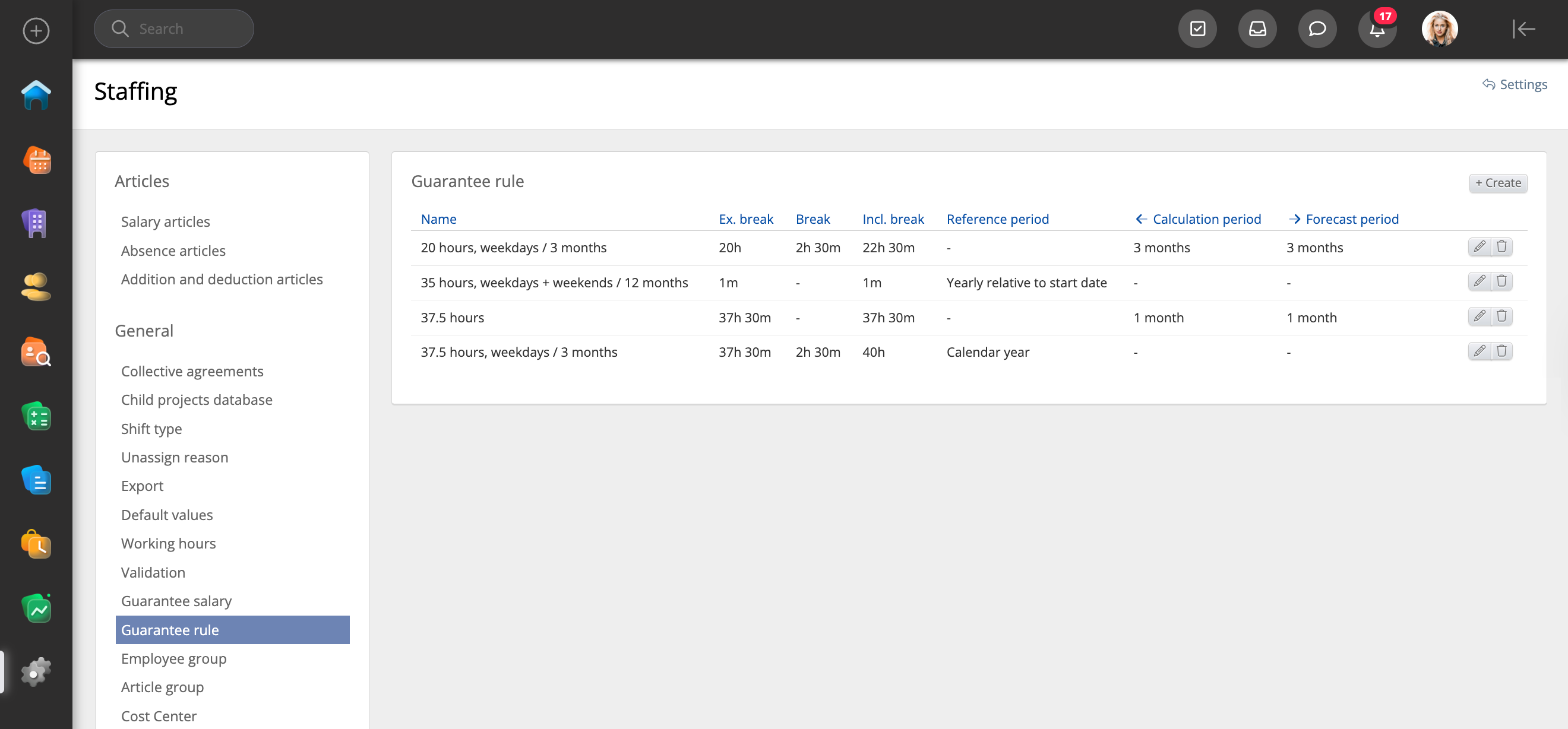 Such a warranty rule can be created from System settings → Staffing → Guarantee rule.