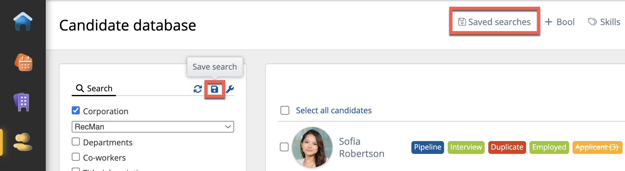 - By clicking the Eye button, you get redirected to the candidates that meet your saved search criteria.
