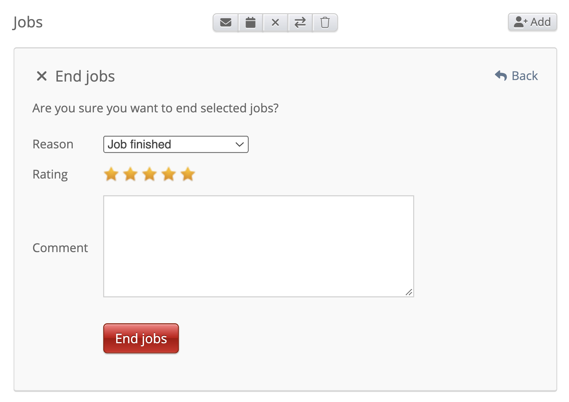 As you can see, you have the ability to give a reason why the job was canceled, give a rating on the job and add a comment at the end. Under reason, you have the following options: