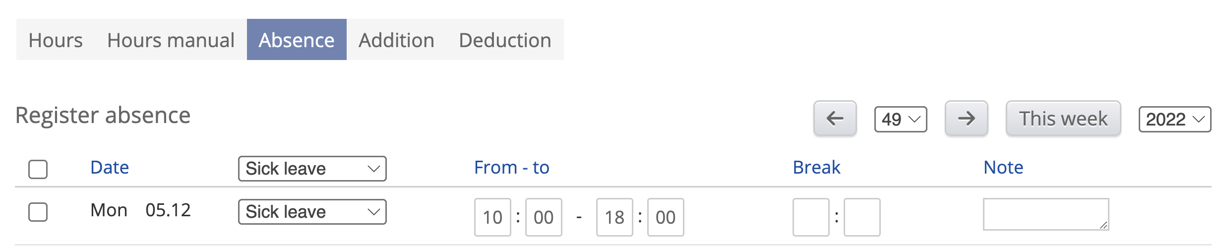 4. Register button: This button is used to register hours for the selected days.