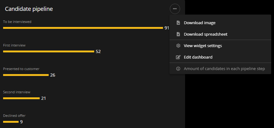 A widget may have more features if you wish to, i.e., download it as an image to be included in a presentation, download a spreadsheet to analyze its content or inspect the settings to gain knowledge of what data each widget displays.