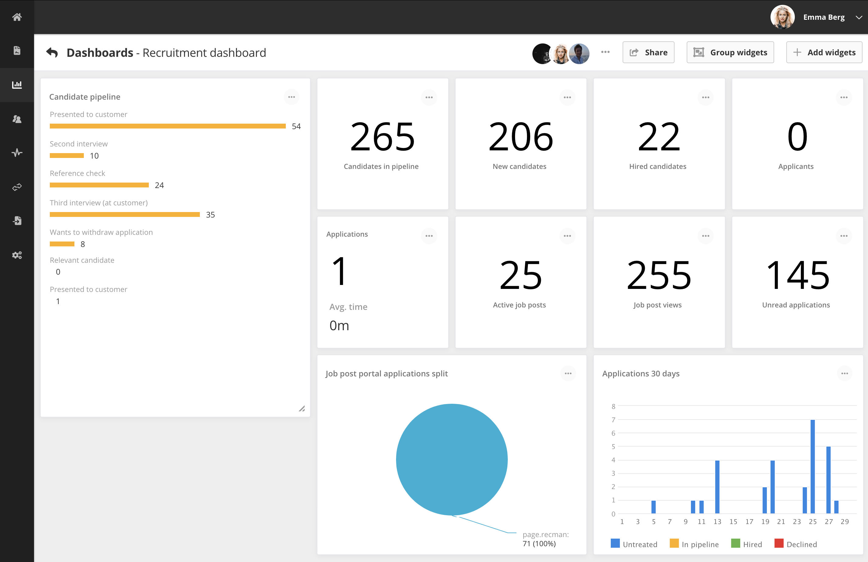 In RecMan, you will be able to generate a variety of reports as well as set up customized dashboards where you may even alternate their appearance for your preference. In this article, you will get a brief introduction to the report- and dashboard tool available in RecMan BI.