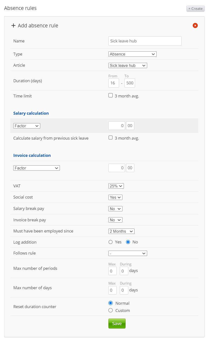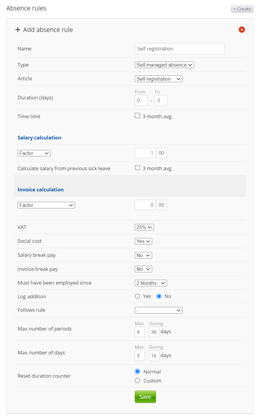 This article must always be set to "Self-managed absence" so that it can count correctly in the absence logic.
