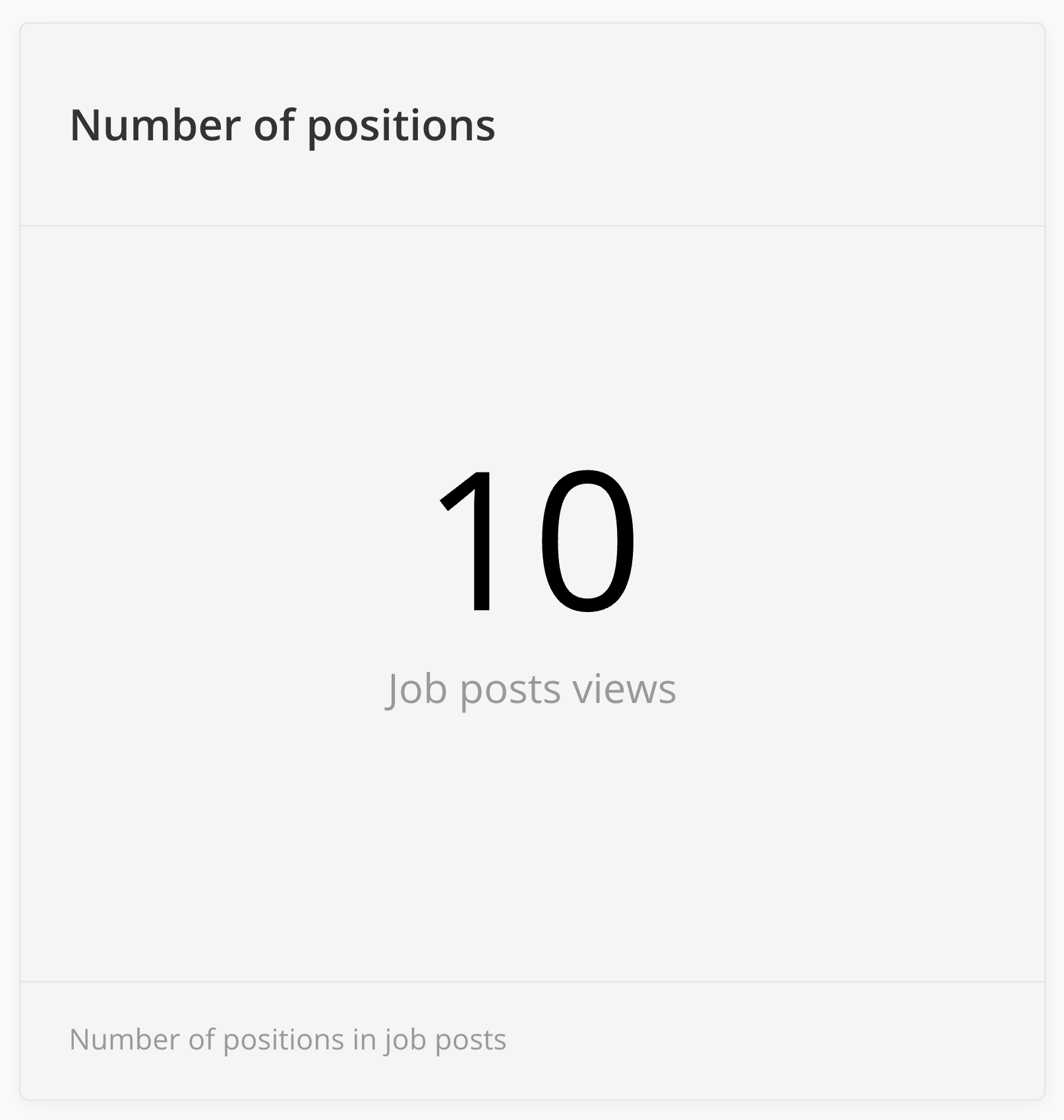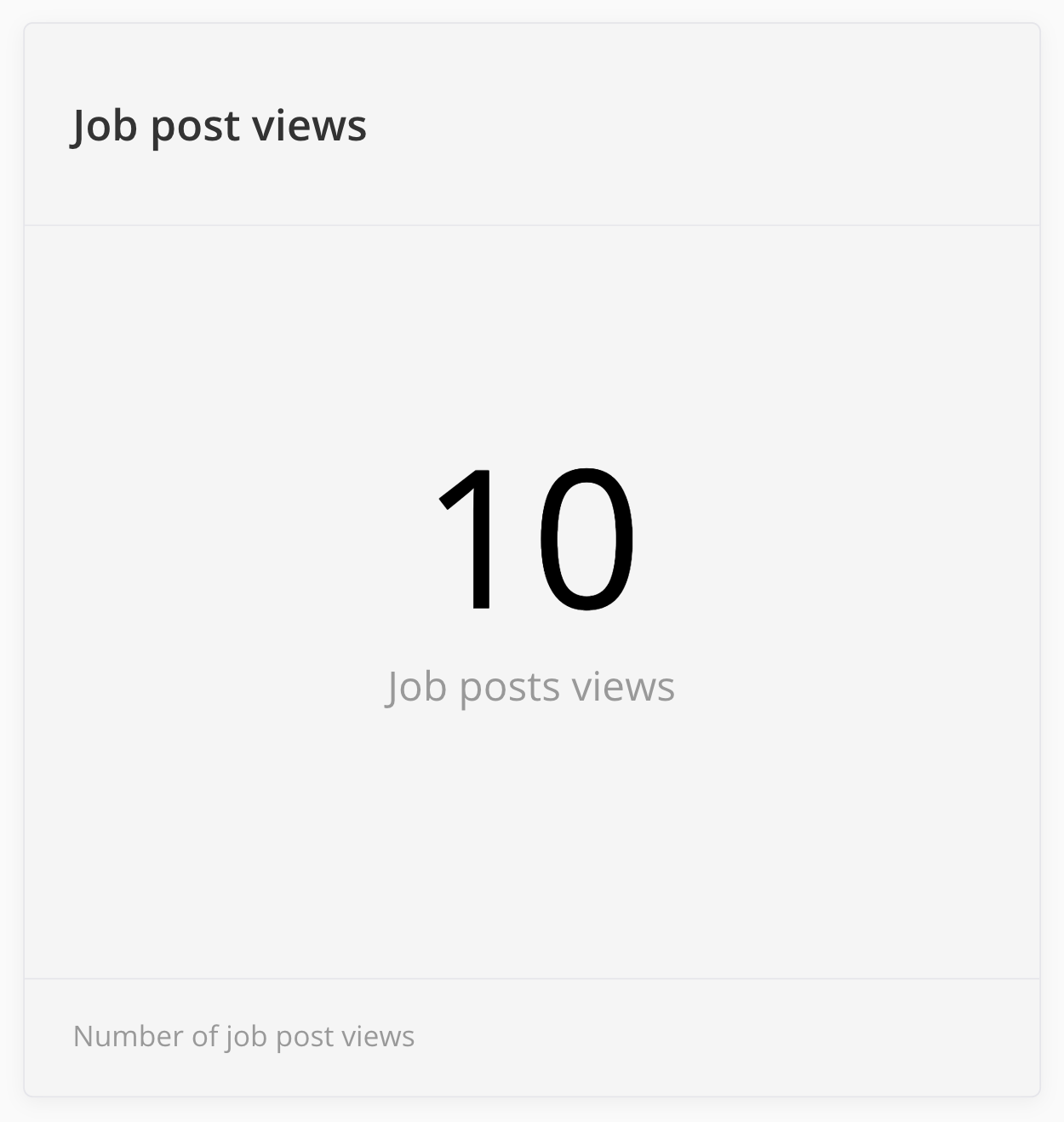 This widget shows the total number of job post views. Data for this widget is fetched from the RecMan System. Job posts can be Active, Expired, or Archived. Data is taken from Job posts with all statuses.