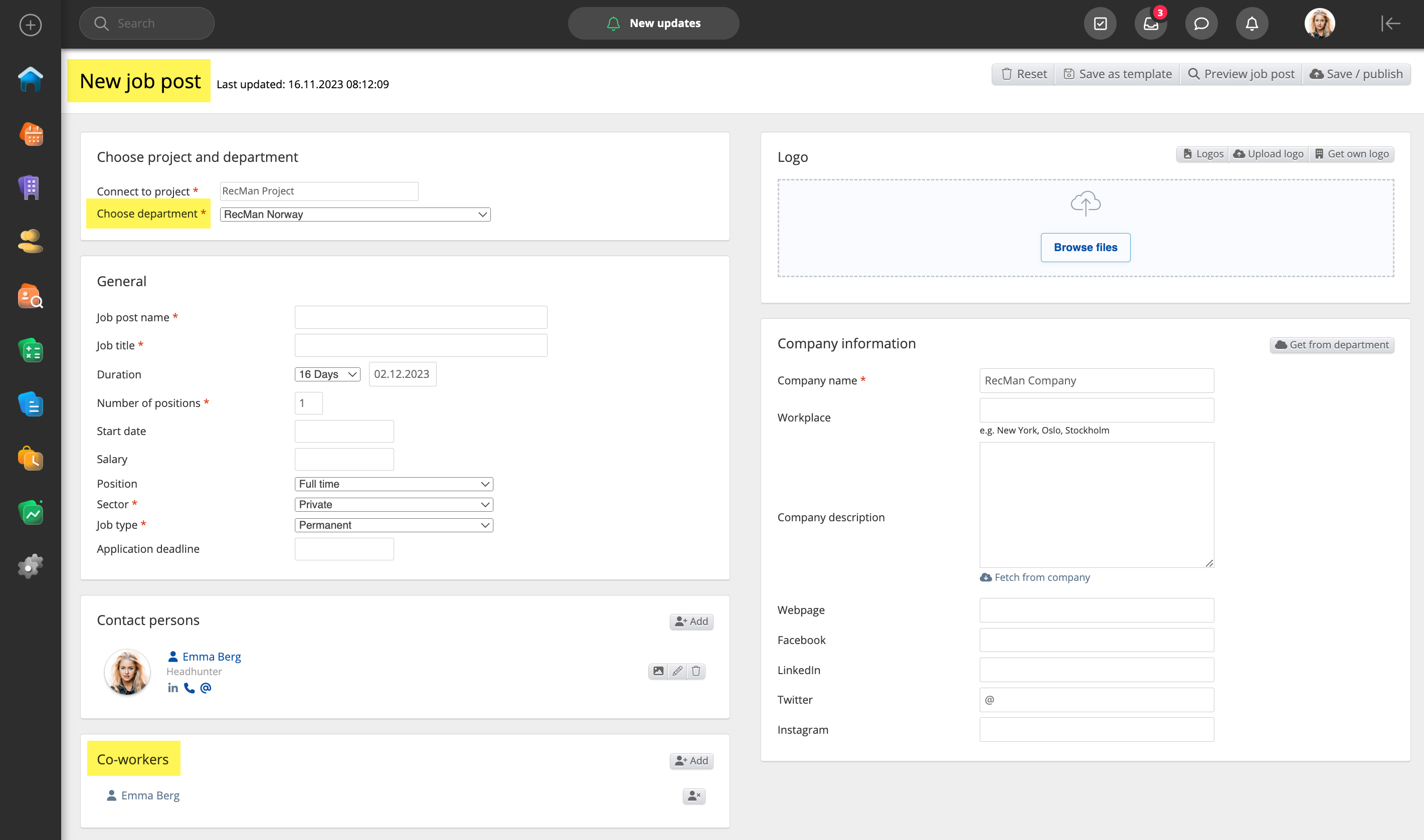While creating a Job Post, the user can connect this Job post to some particular Department and Co-worker, so filtration will be according to these connections.