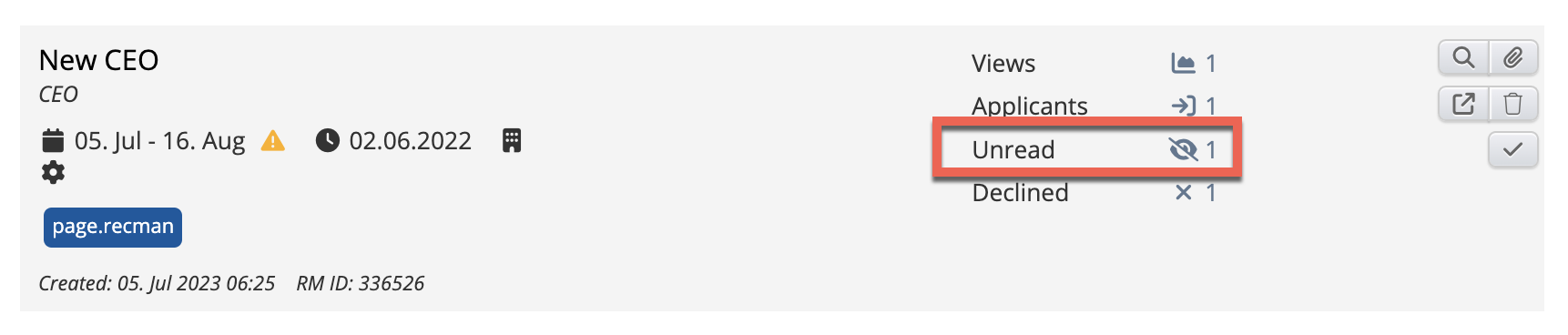 This widget shows all unread applications in RecMan, displayed regarding applied settings in the widget.