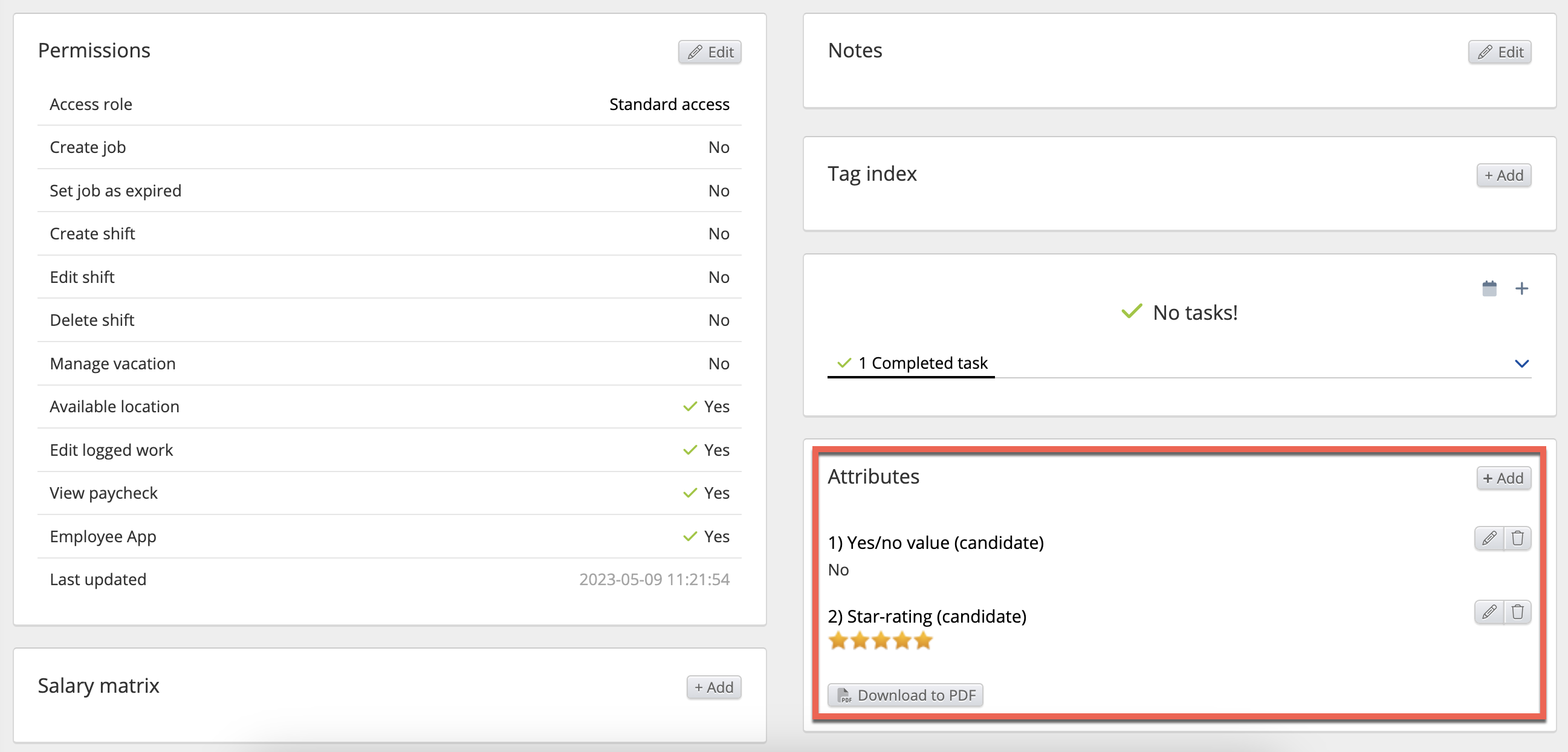 In case the user chooses Co-worker data level, then the data will be fetched from all Job posts that are connected to the chosen Co-worker (while creating a Job post, there is the possibility to connect this Job post to the specific Co-worker, so it will check Job posts which are connected to chosen Co-worker).