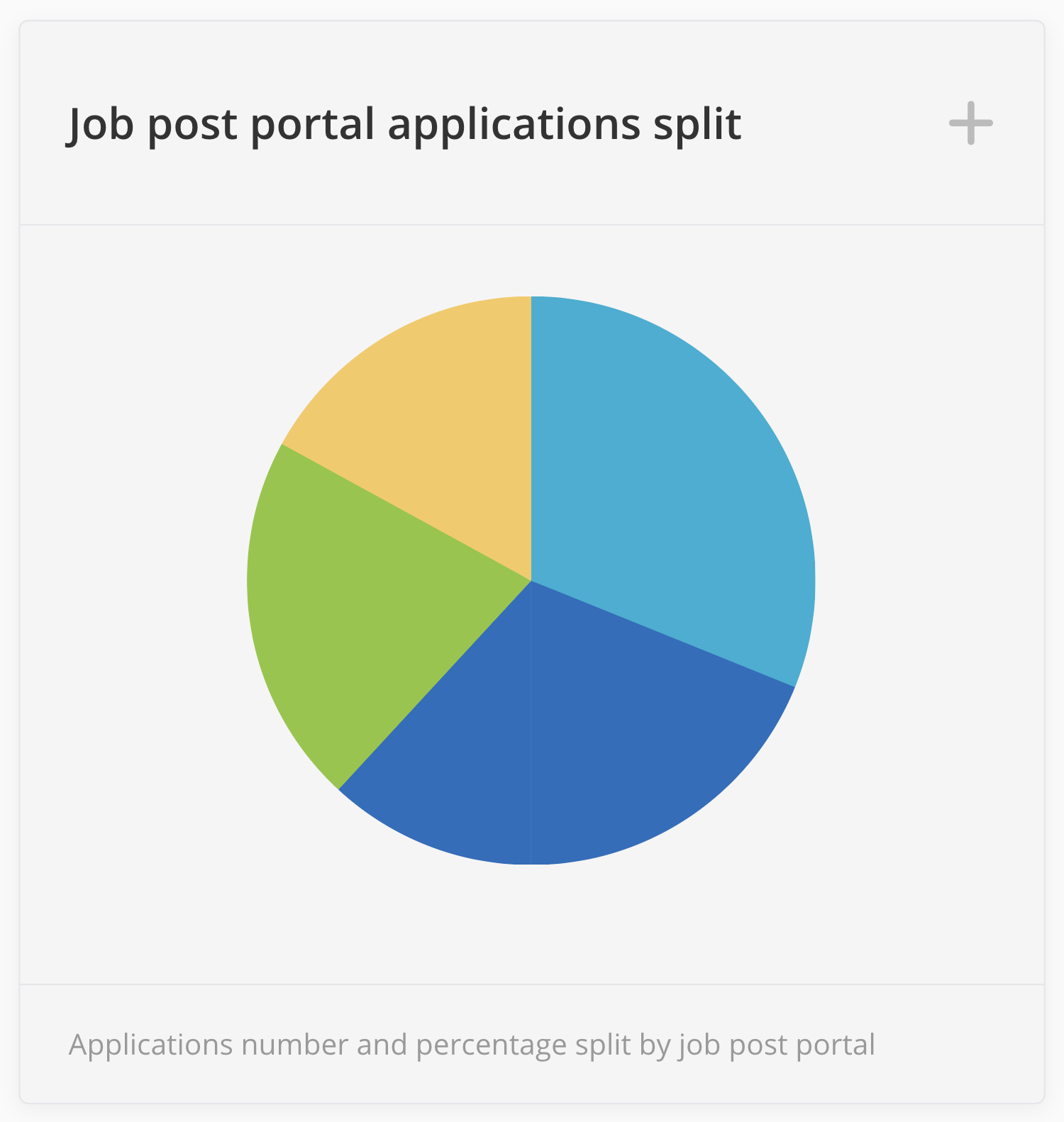 This widget shows how many applications were received according to the portal. While creating a Job post, users can add some External job portals. It means that this Job post will be available on third parties, and candidates will be able to send applications from these portals.