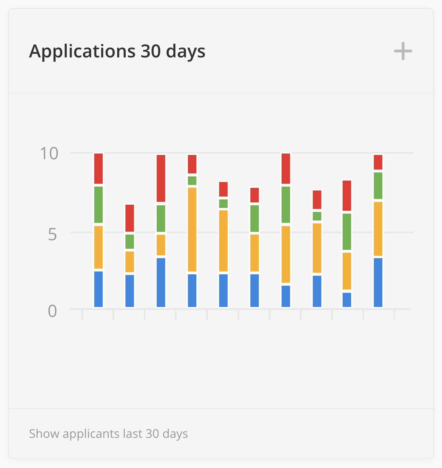 This widget shows candidates in different statuses in the RecMan system according to the last 30 days - Hired, Untreated, In pipeline and Declined. After creating a Job post, the user can add candidates to this Job post and assign some status to these candidates. Job posts can be Active, Expired and Archived. Candidates will be counted only from Active Job posts.