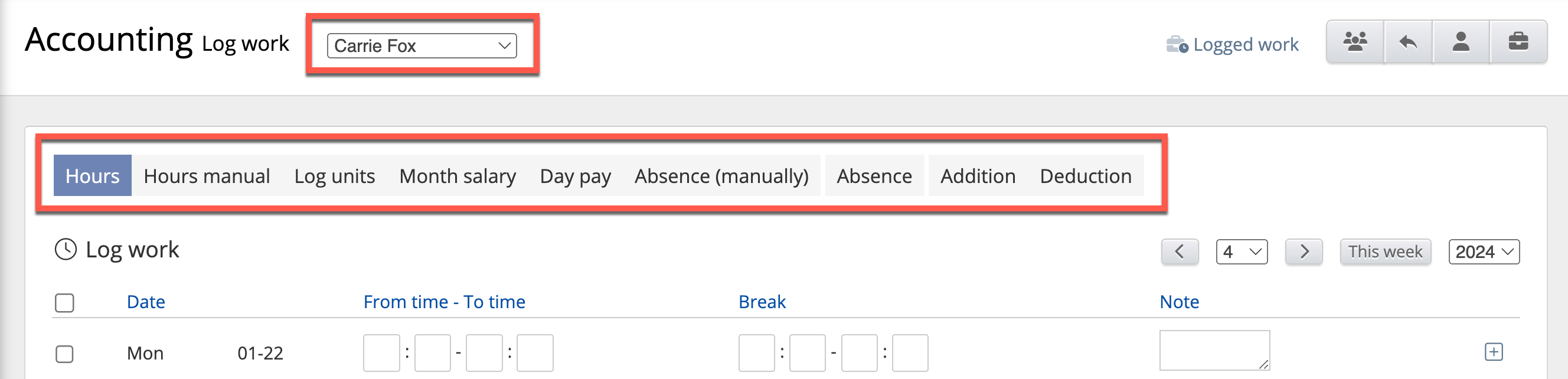 - Logged hours
