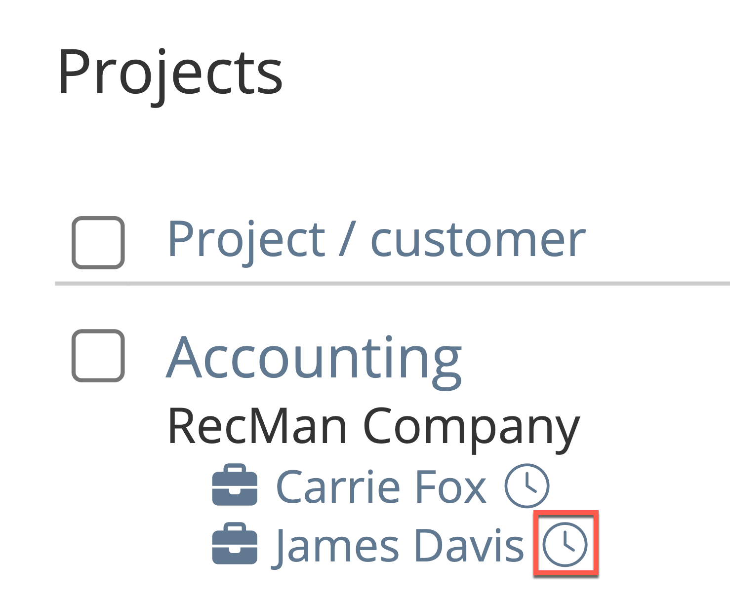 If the admin selects the Co-worker data level, the Dynamic data level is set, and data is shown according to the co-worker connected to the Project.