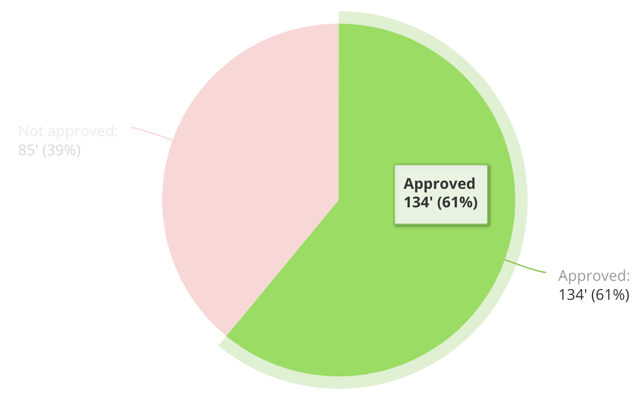 A tooltip is shown after hovering the Approved or Not Approved sections from the widget: