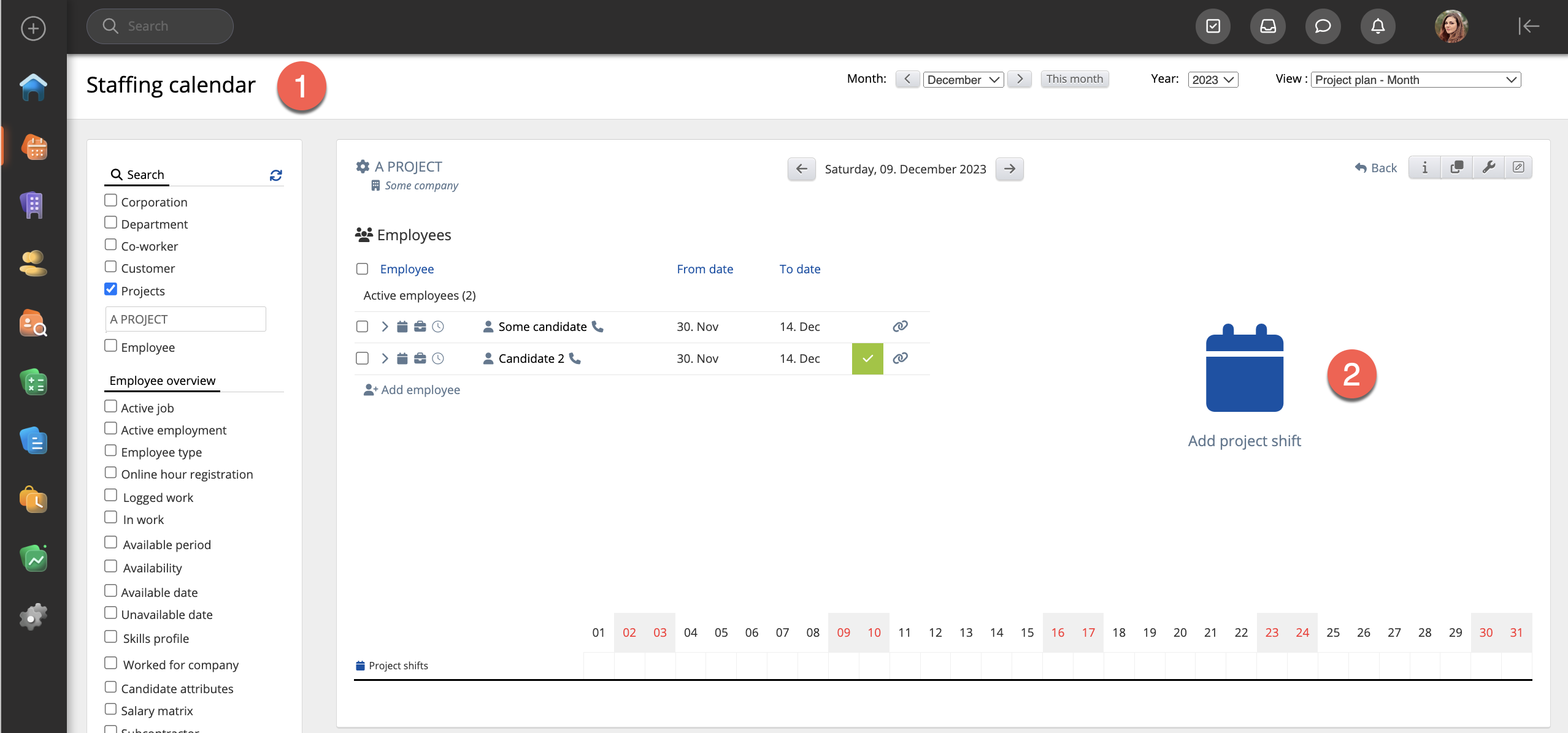 Employees from this widget are counted according to the Project in which they have a job. While creating a Project, the user can connect a particular department to this project.