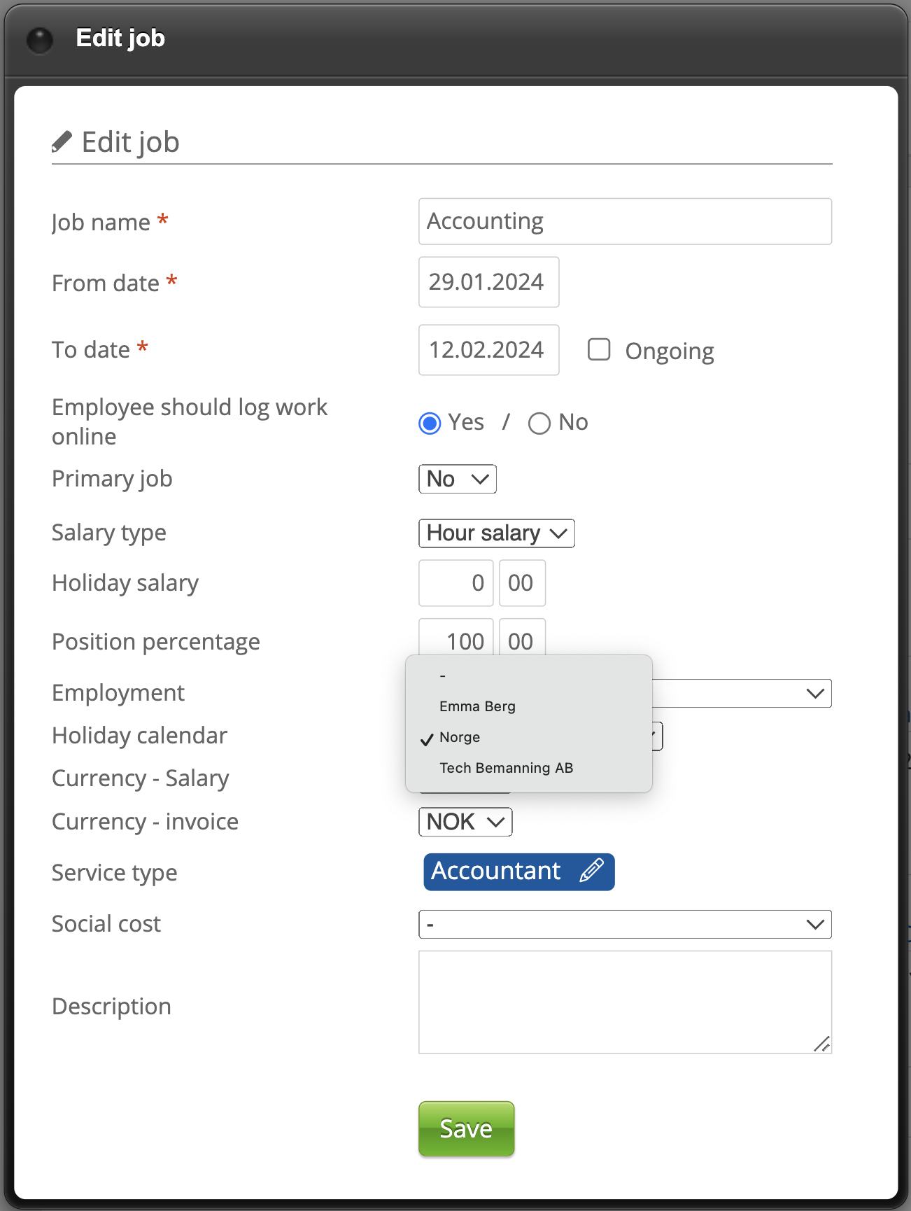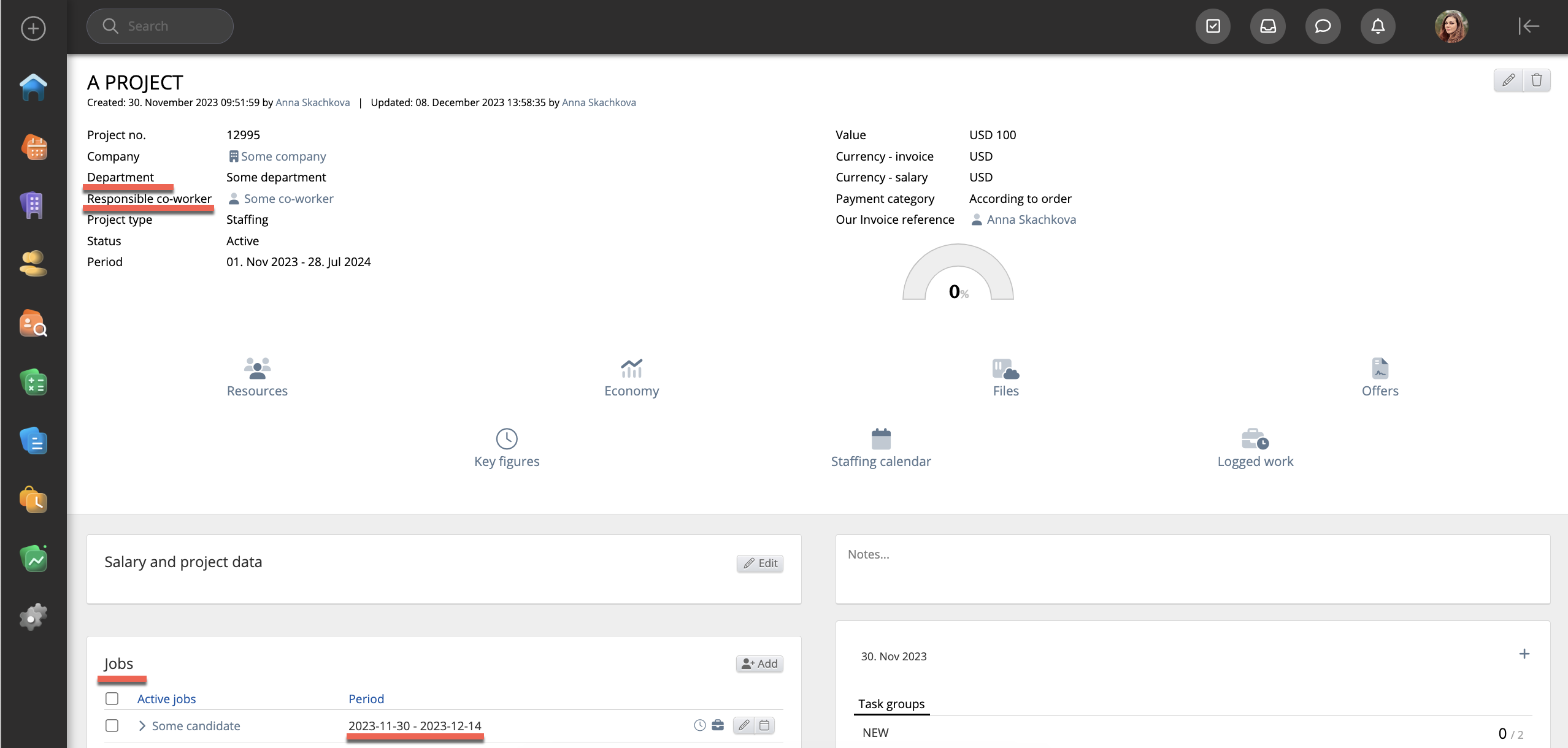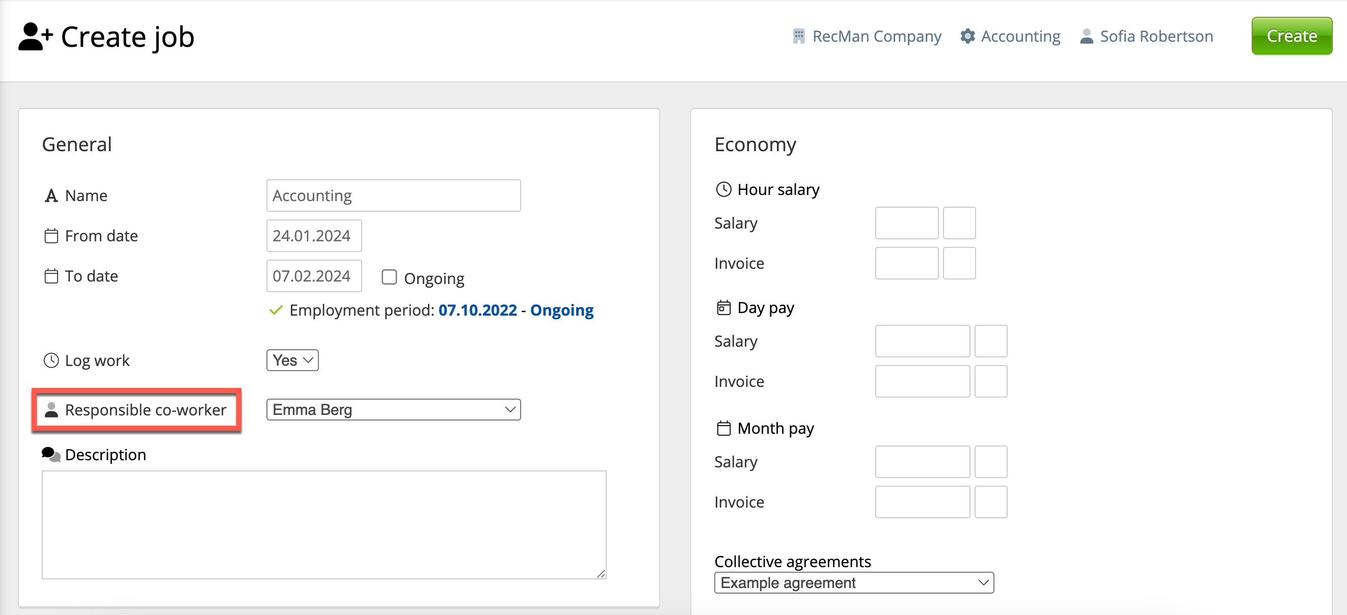 - Responsible co-worker (radio-button) - on Project, on Job and on Primary employment options. These options work only with the Co-worker data level.
