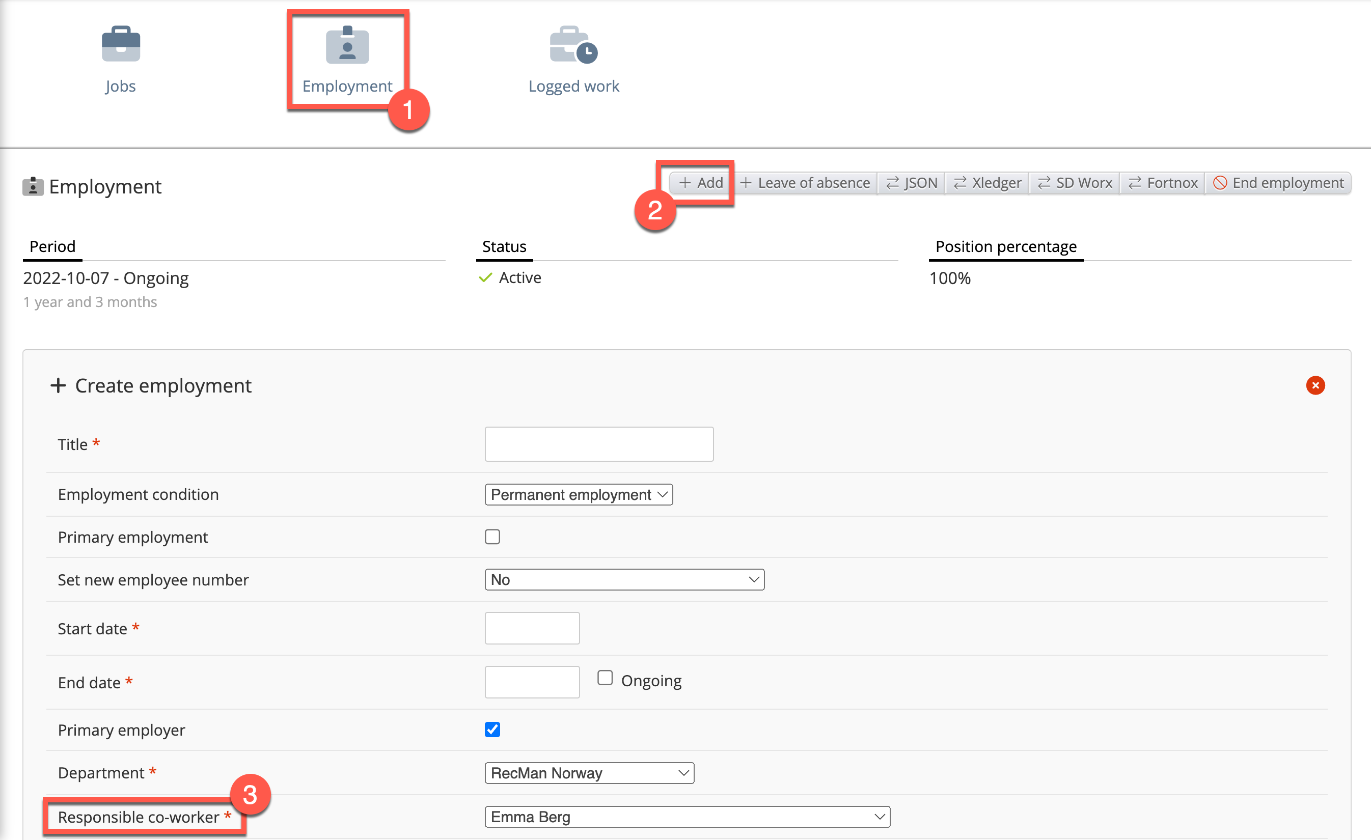 In case the user chooses the On primary employment option, then Employees will be counted according to the responsible co-worker from candidate card Employment.