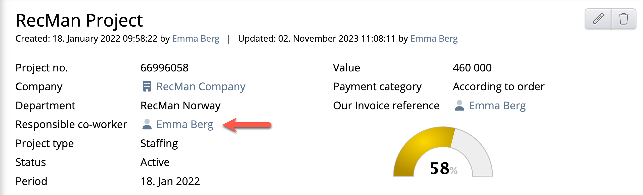 - Employee name. The user is redirected to the Employee Card in RecMan after clicking the employee name.