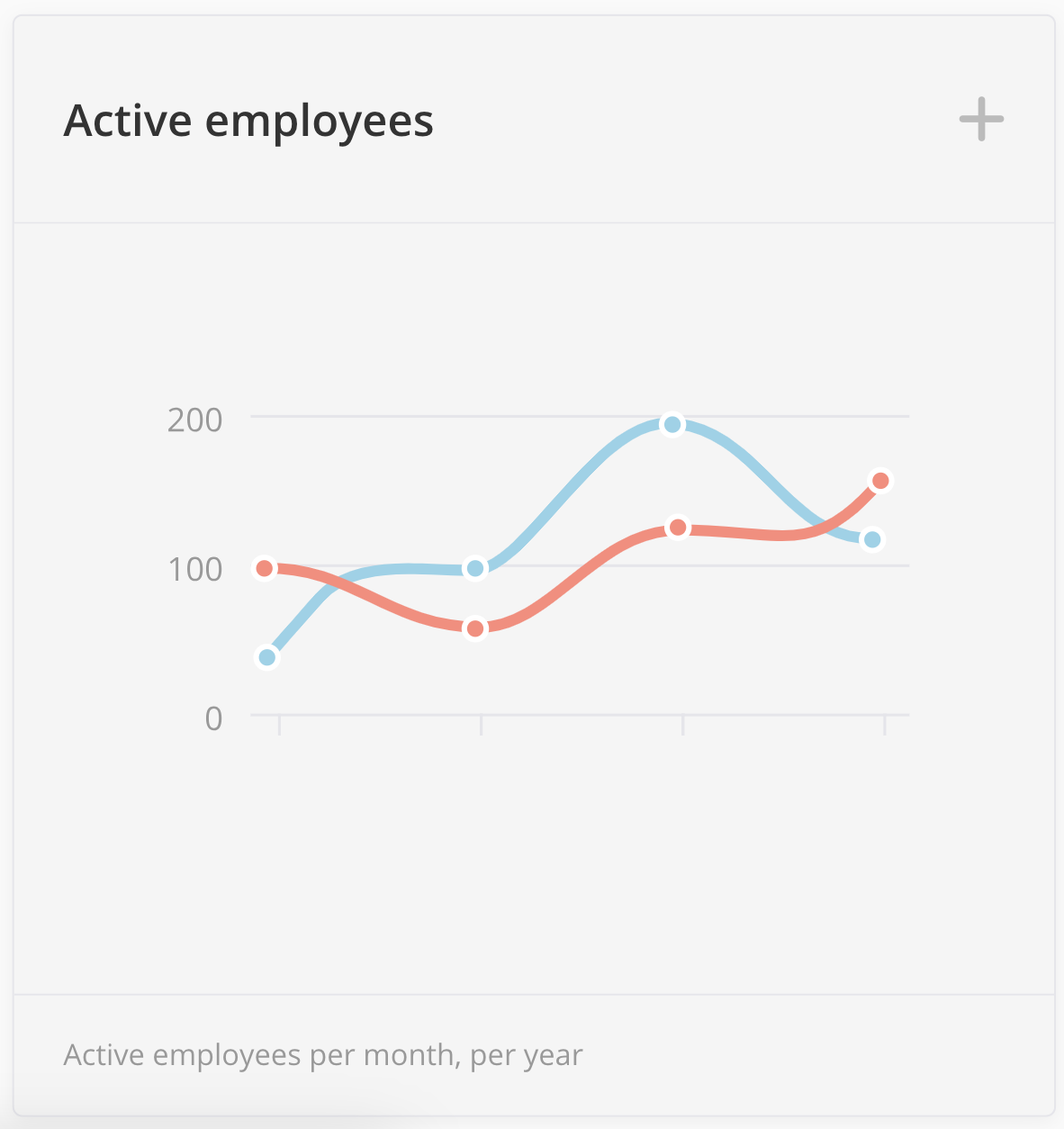 A tooltip with the total number of employees is shown after hovering over the active employees' chart.