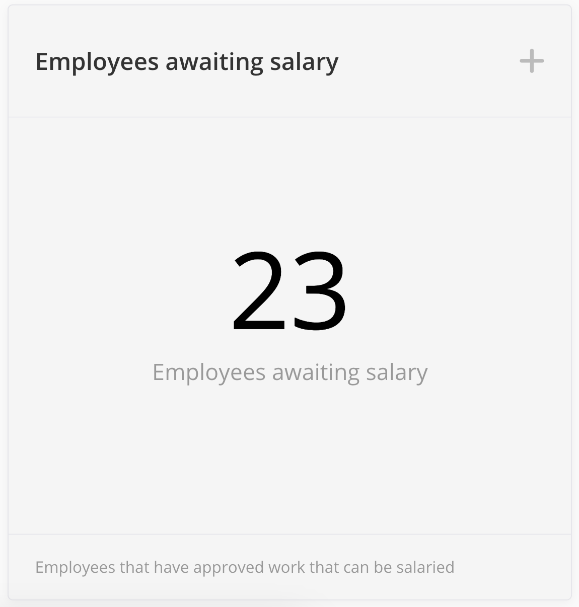 This widget shows the number of employees who are awaiting salary. Fetch info about employees who have approved salaries and can be invoiced (salaried).