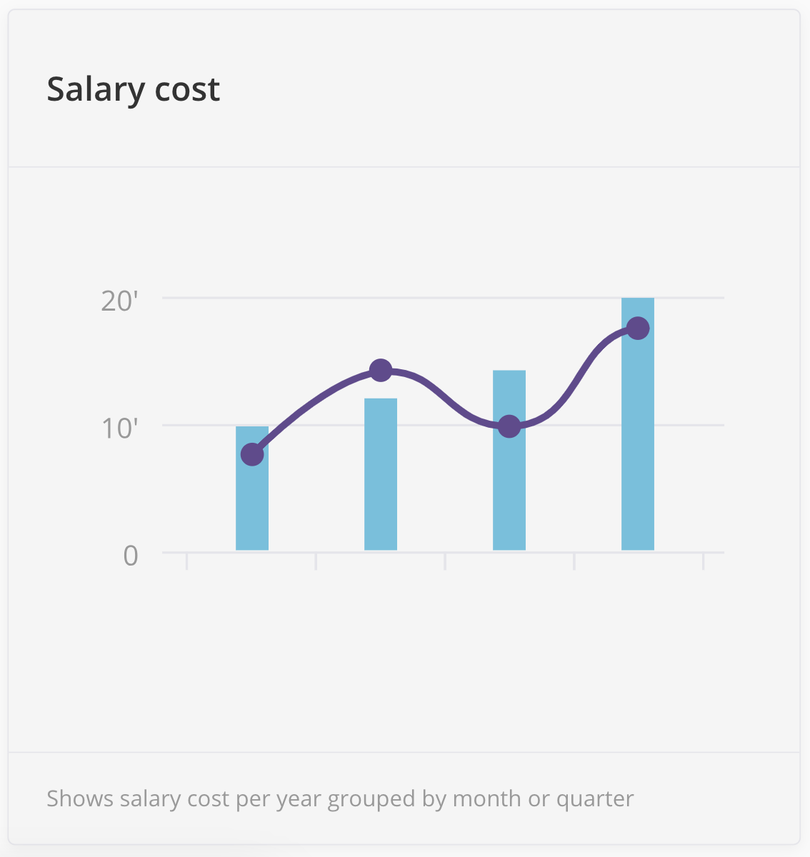 The Salary cost widget shows salary cost for the year grouped by month or quarter.