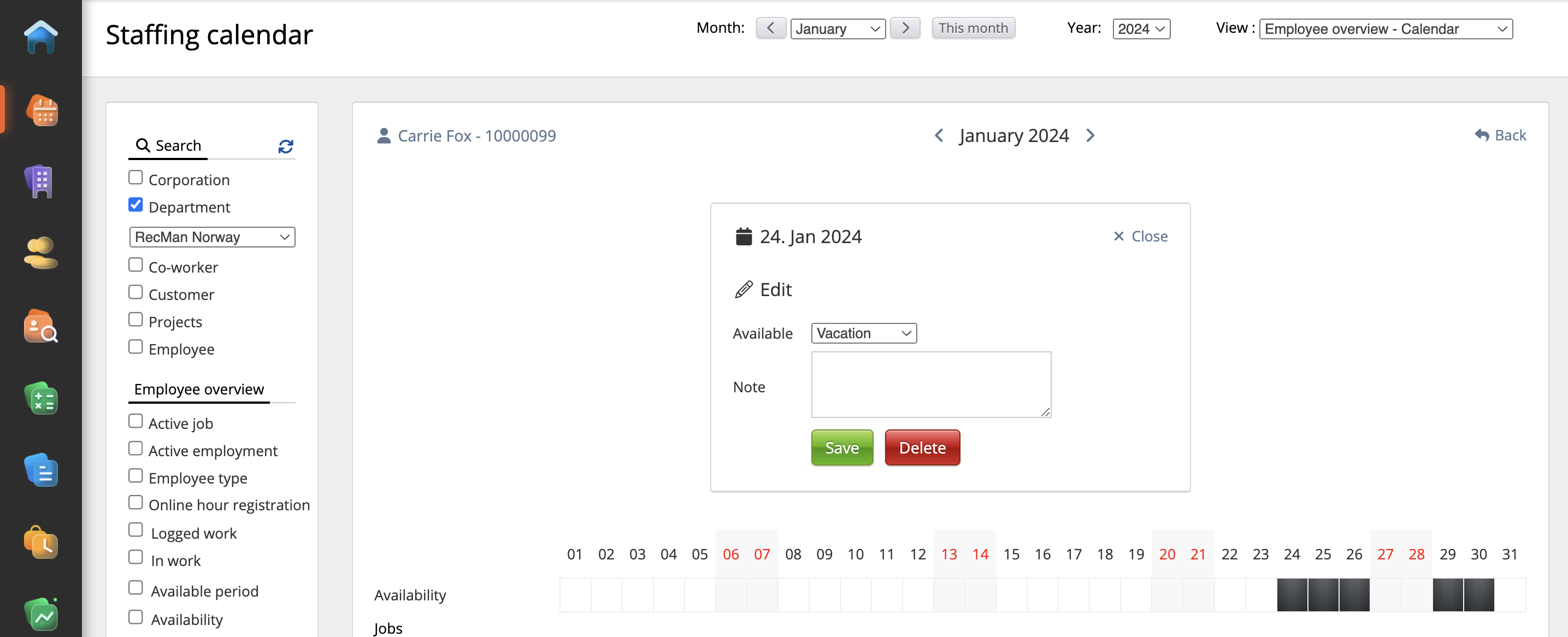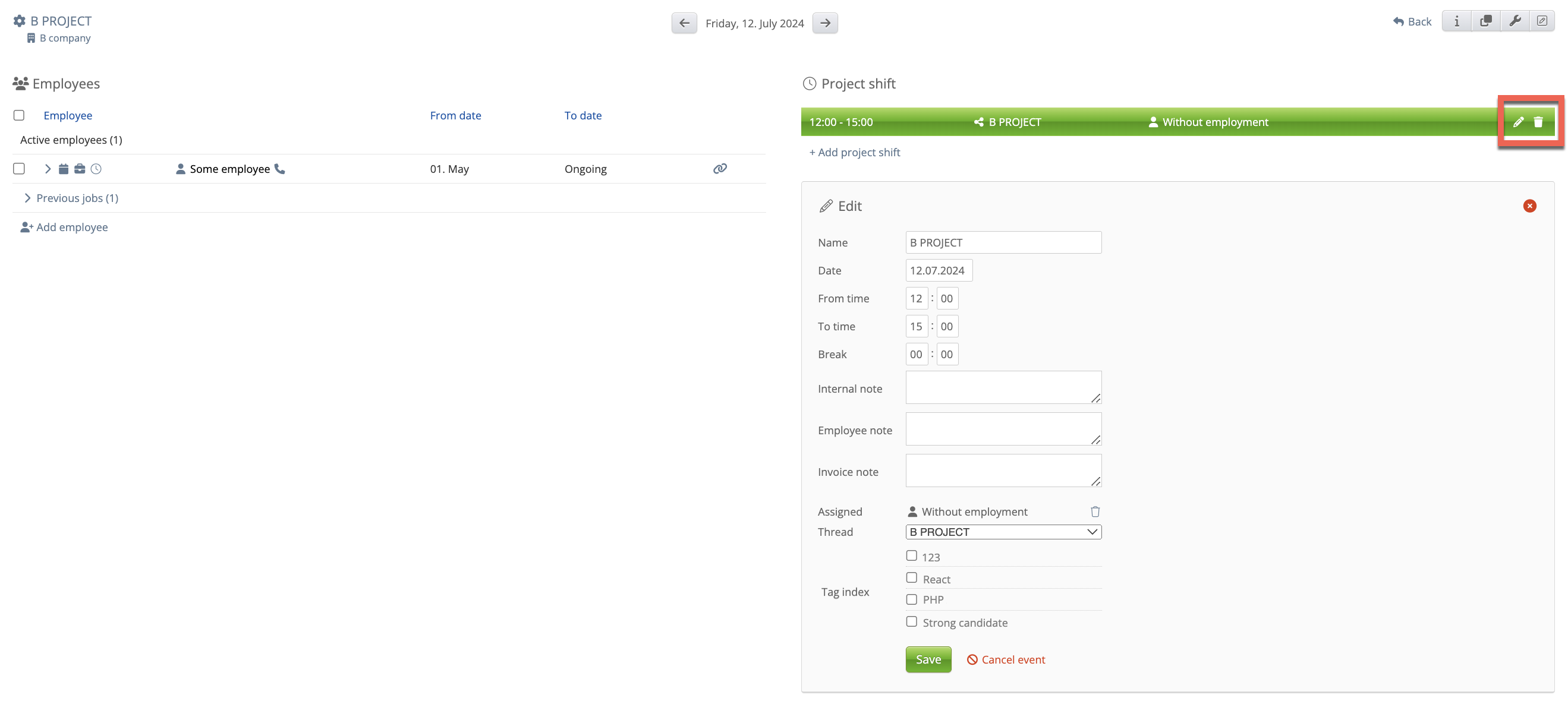 Also, the user can edit and cancel the necessary shift from the Staffing calendar:
