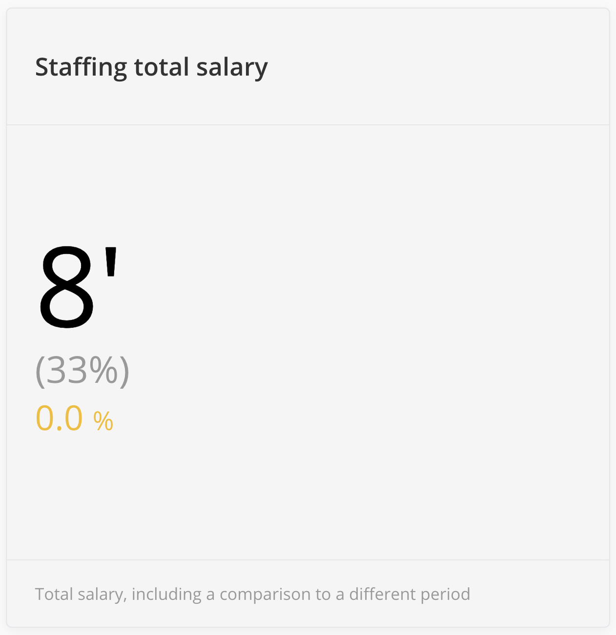 The Staffing total salary widget shows the total salary, including a comparison to a different period. The widget should be able to reflect data following the total “CM - total” and “Staffing - total” reports.
