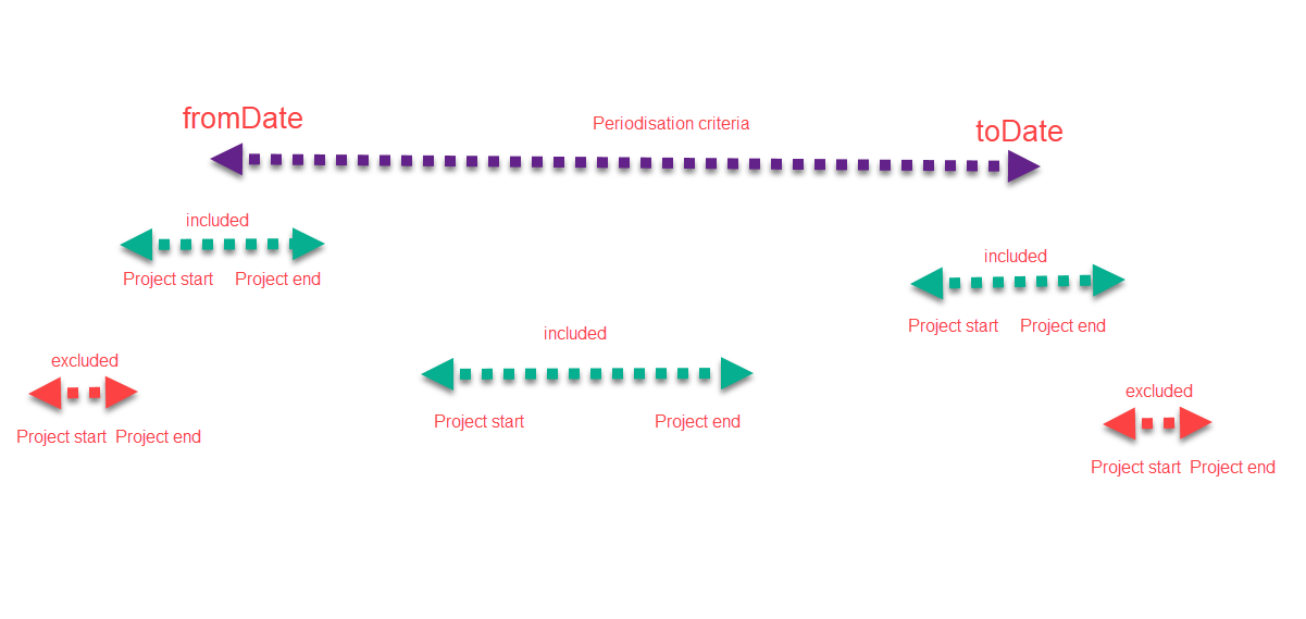 - ‘Filter by’ section (radio buttons): Project period (default), Start date, End date