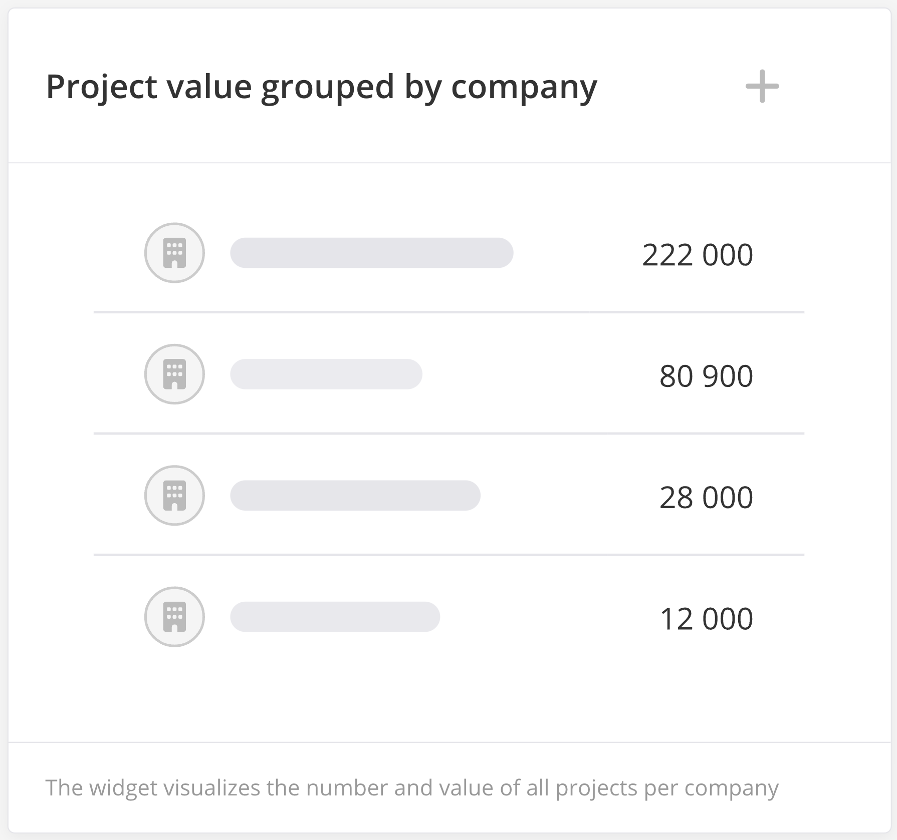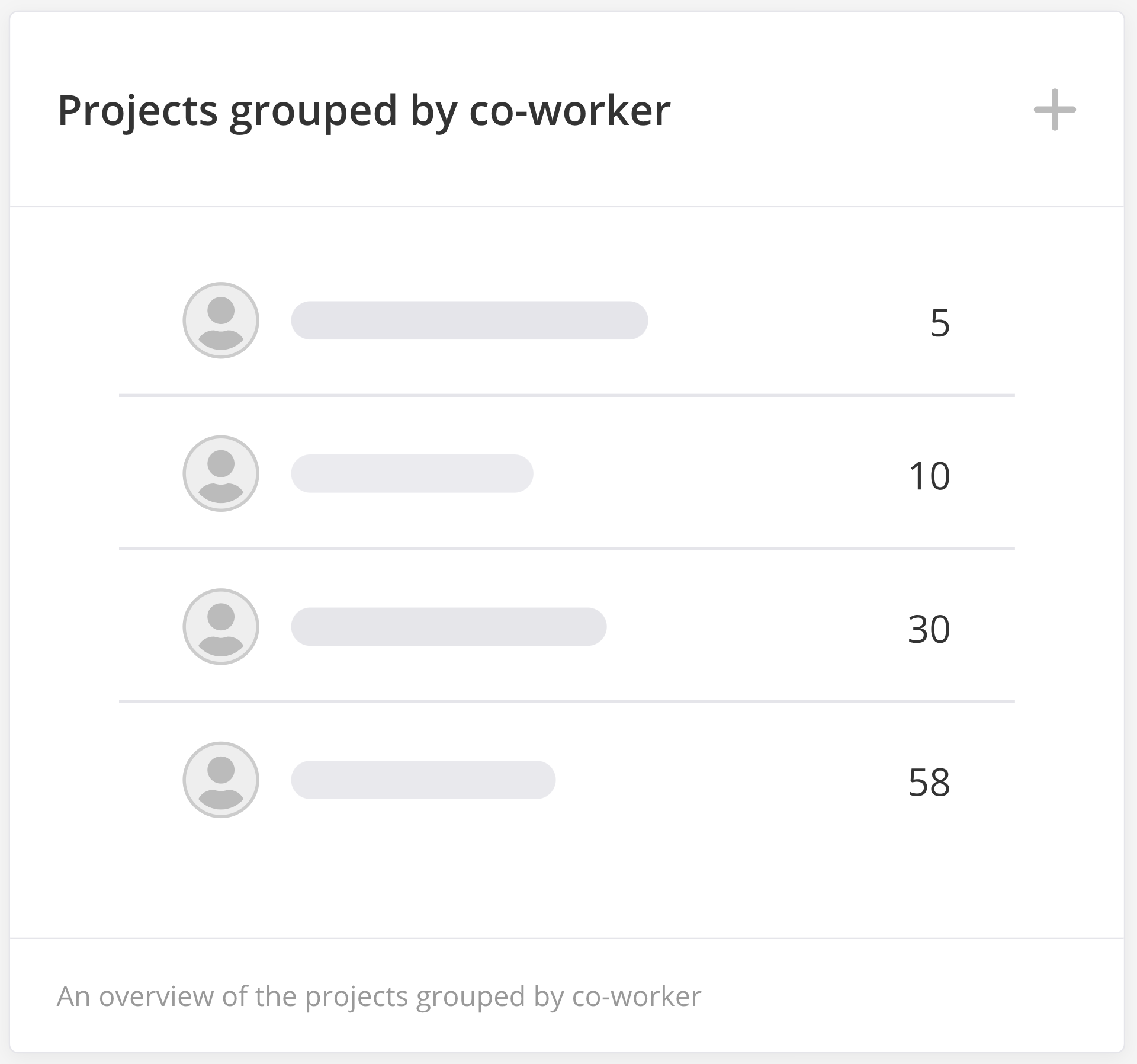 The widget shows an overview of the projects grouped by co-workers. The widget helps to analyze the performance of the co-workers by comparing the number of projects and their total value.