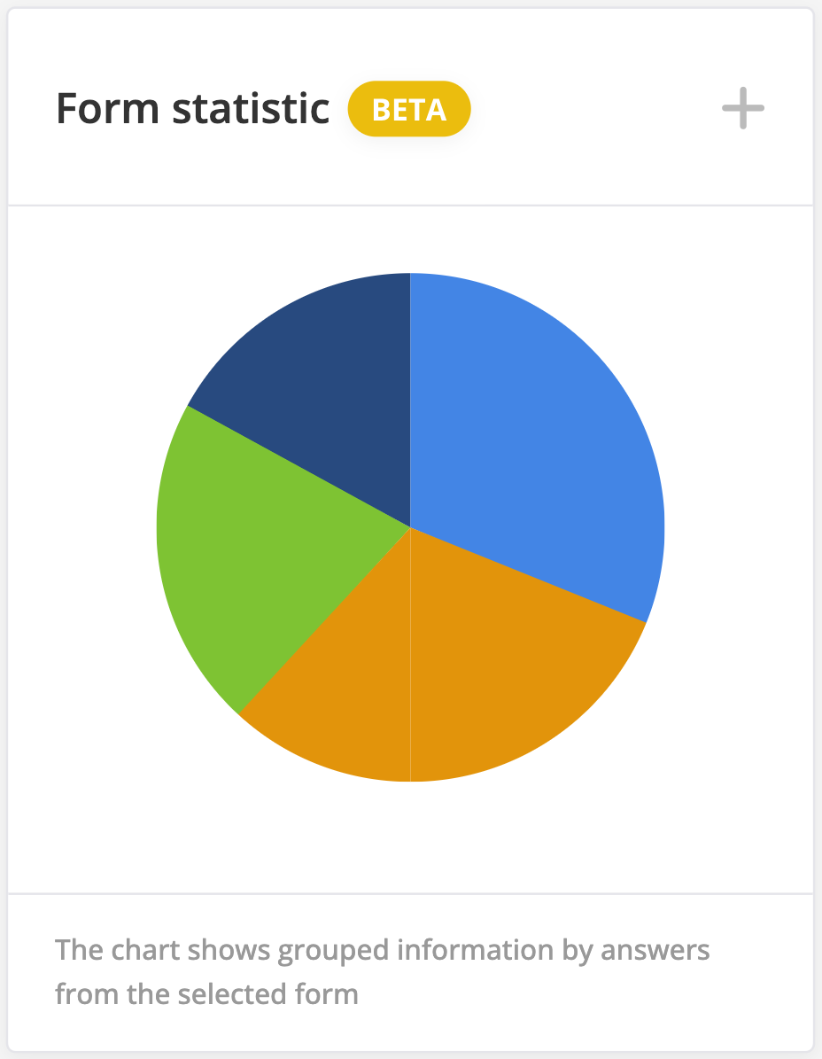 The chart displays grouped information based on answers from the selected form. The Form statistic widget provides information about the collected responses for the questions, grouping and displaying them in a chart. Information about the Forms module can be found in this article.