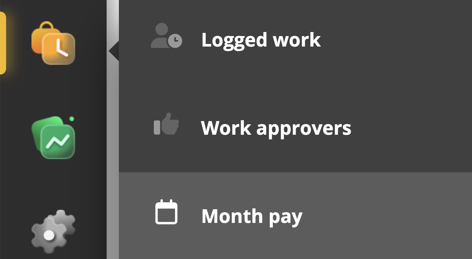 You can find the module Month pay from the left menu by hovering over the bottom yellow clock symbol.