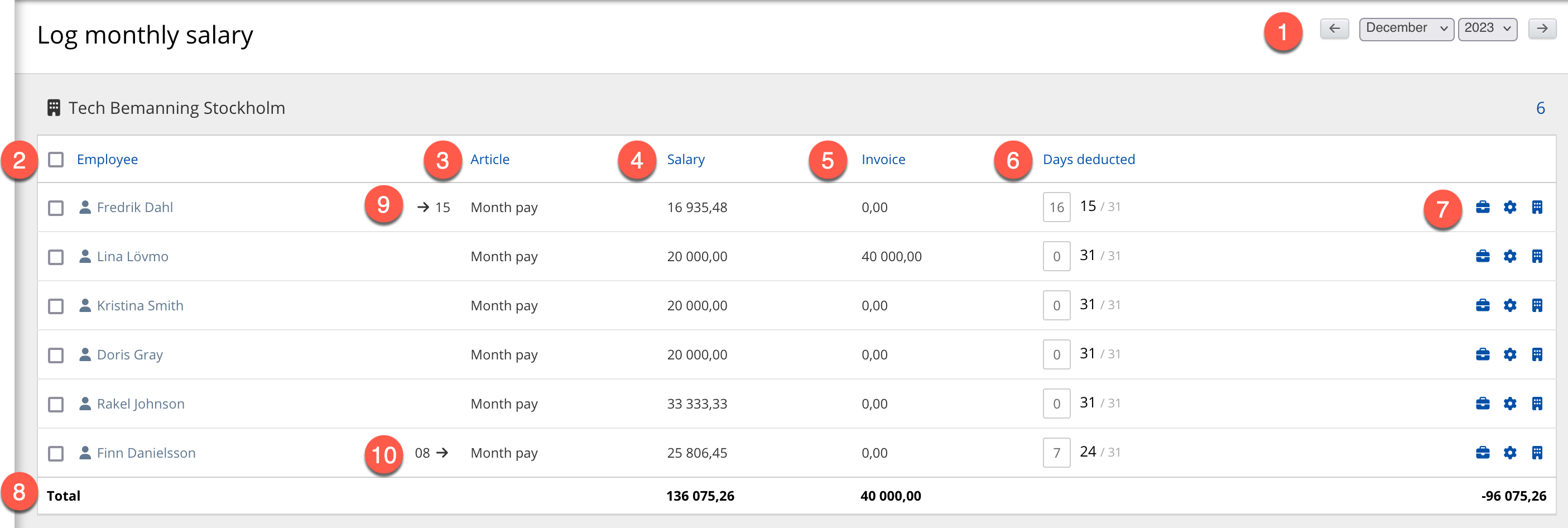 - The article where monthly salary will be logged. The logged monthly salary will be located in the Logged work module.