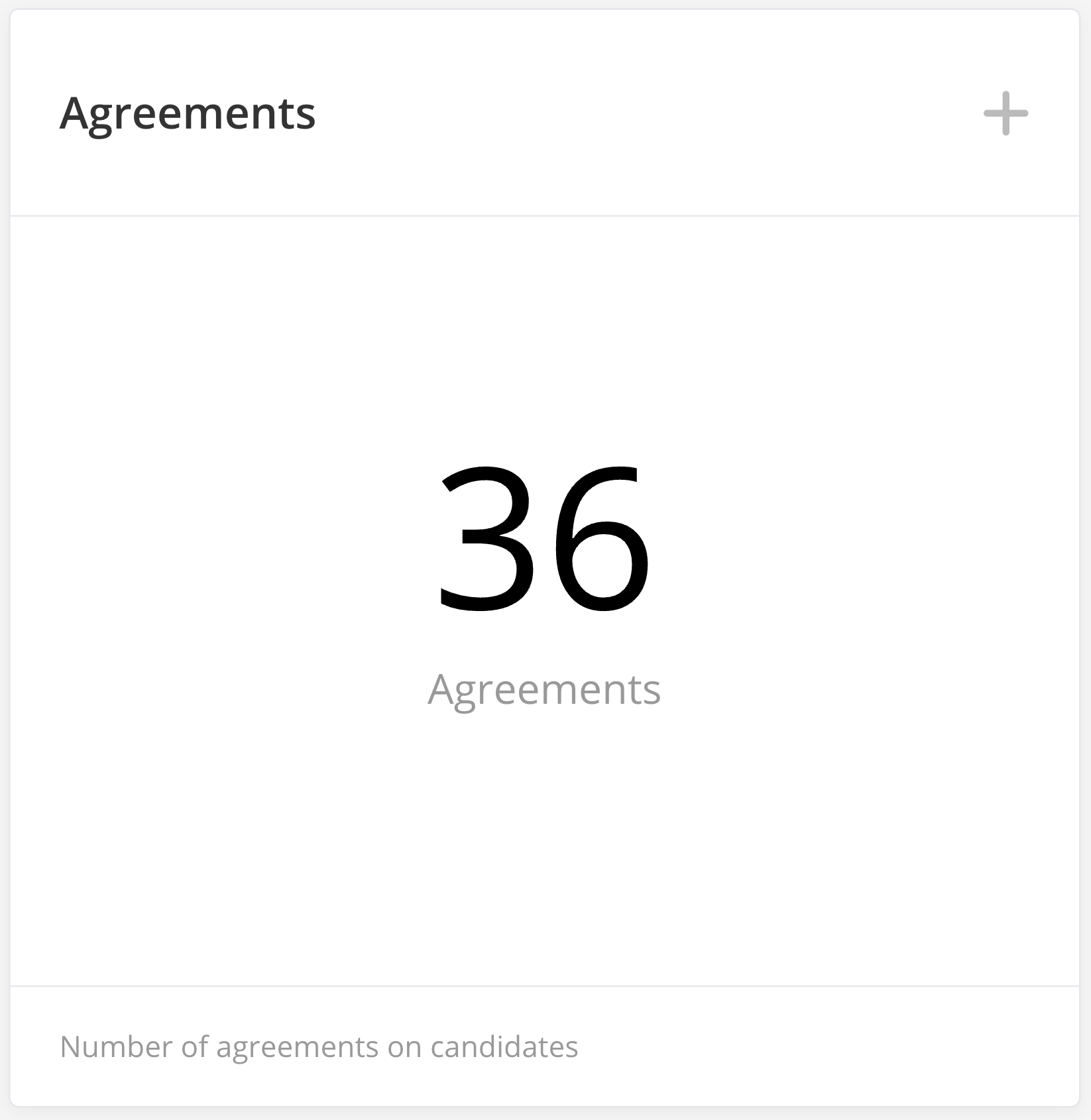 The Agreements widget shows the number of agreements according to the widget settings. It provides an overview of agreements on candidates/employees and allows you to check each in a detailed view.