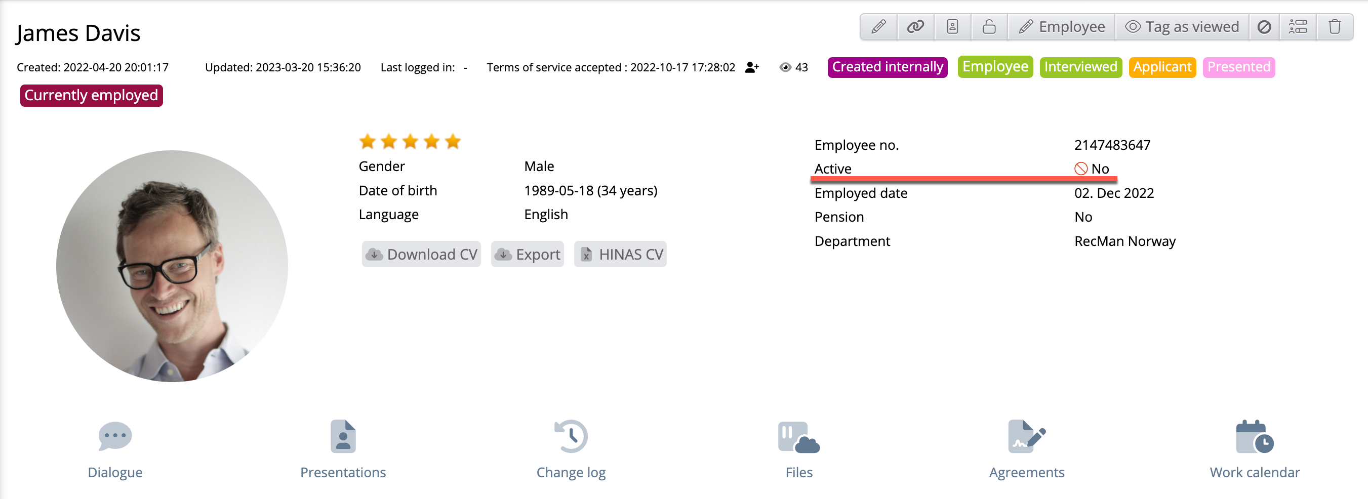 Default state: All - “Active employee” radio buttons: