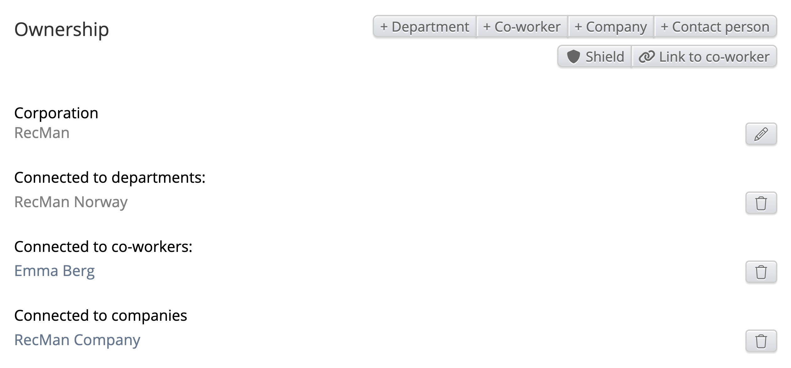 - Connection (drop-down) - On employment, On ownership options