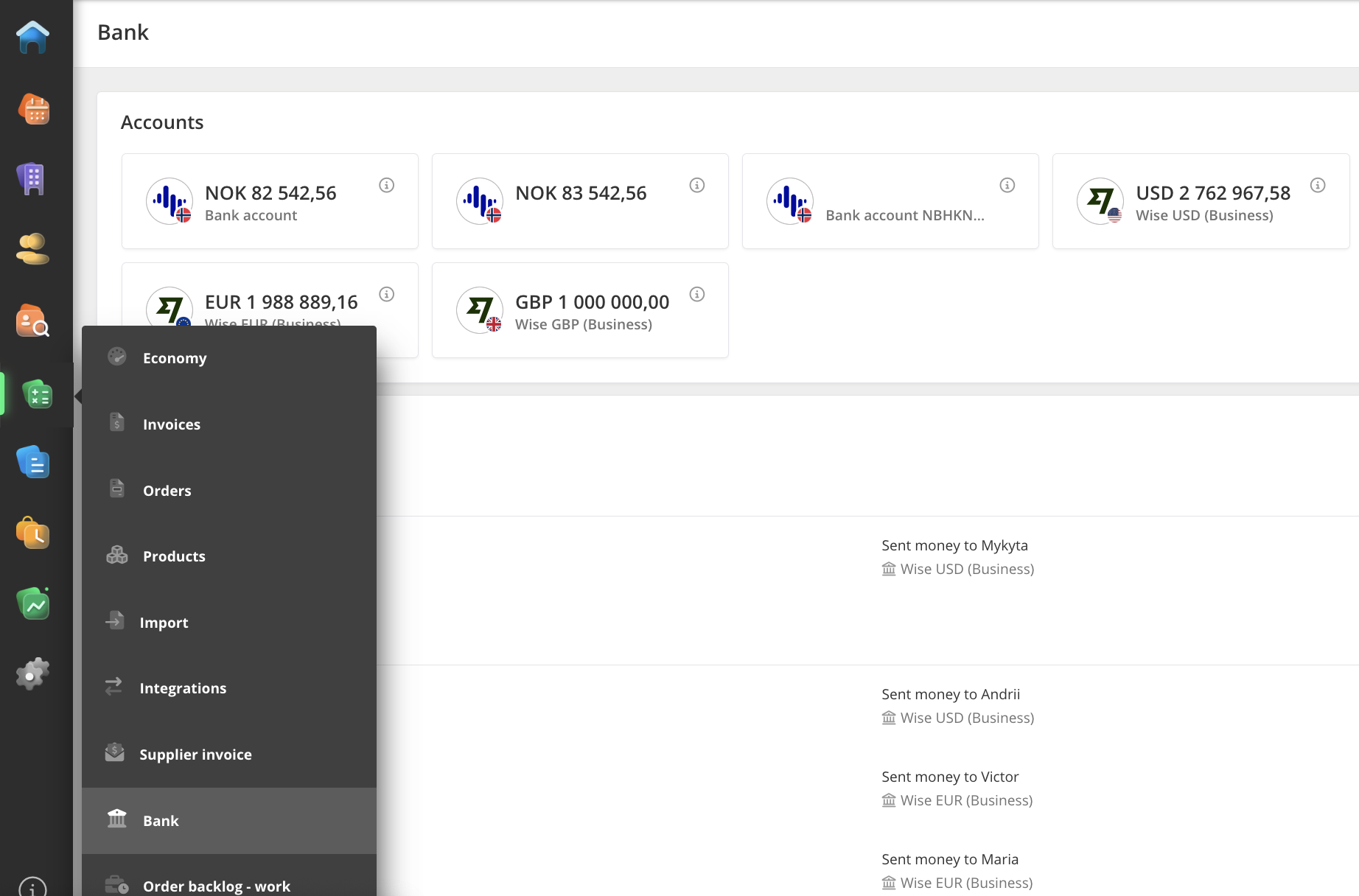 The user can fetch the data about bank accounts from the Economy section in RecMan.