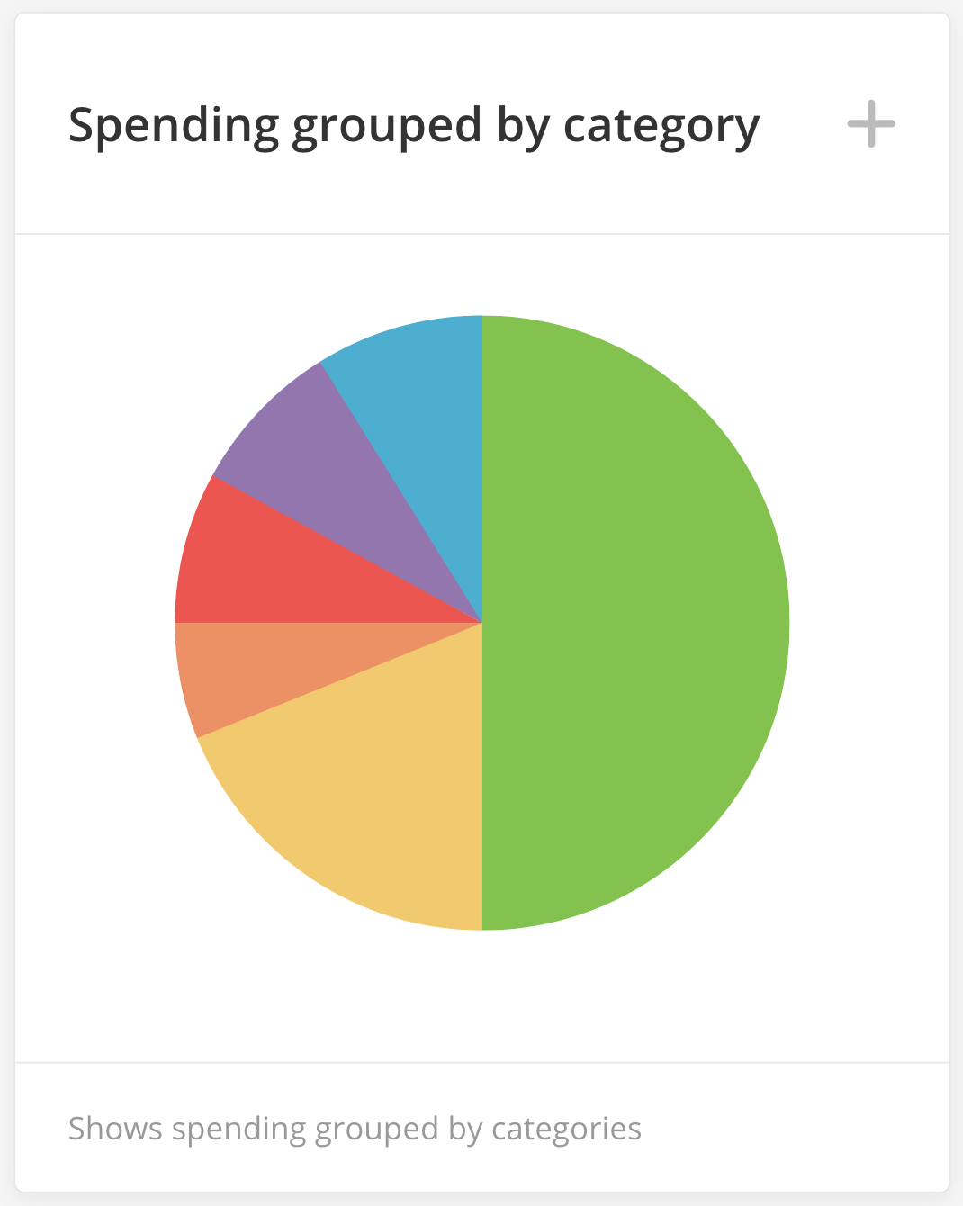 This widget displays summary information on the specified criteria grouped by categories of bank spending.