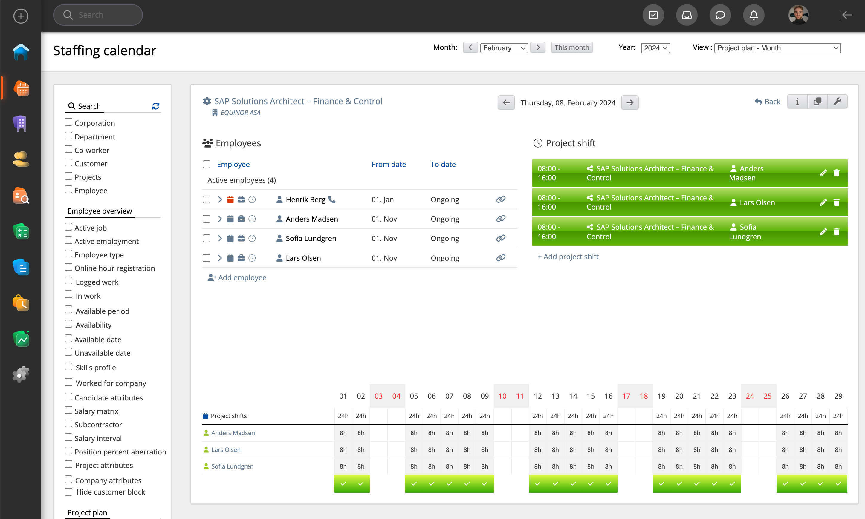 To get started with creating a shift, you can go to the staffing calendar and change the view to “project plan - month.” Here, you will be able to view all the staffing projects and click one of the dates to start adding your shifts. You can view a short introduction in the video below: